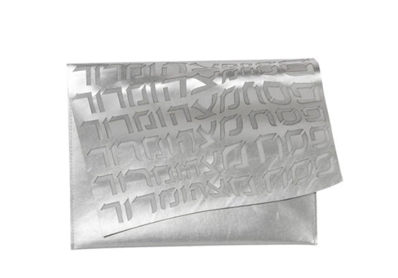 For this contemporary bag, we’ve created a design that starts with our original Star of David pattern and morphs into scattered geometric lines; including the hebrew word "Pesach".