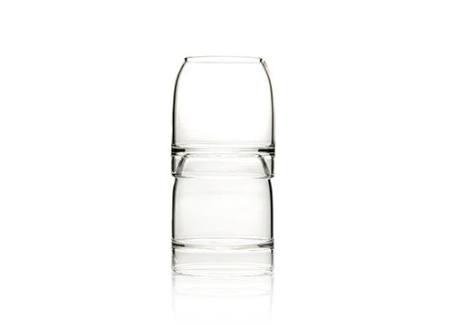 Available in: Amber, Amethyst, Gray, Blue, Green, Red. Dimensions: 8.2 cm (ø) x 9.6 cm (H). Capacity: 33 cl.