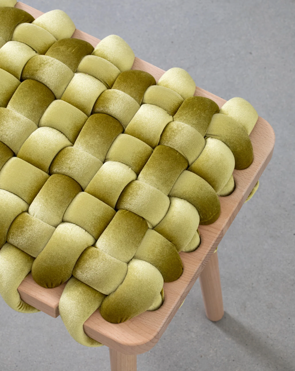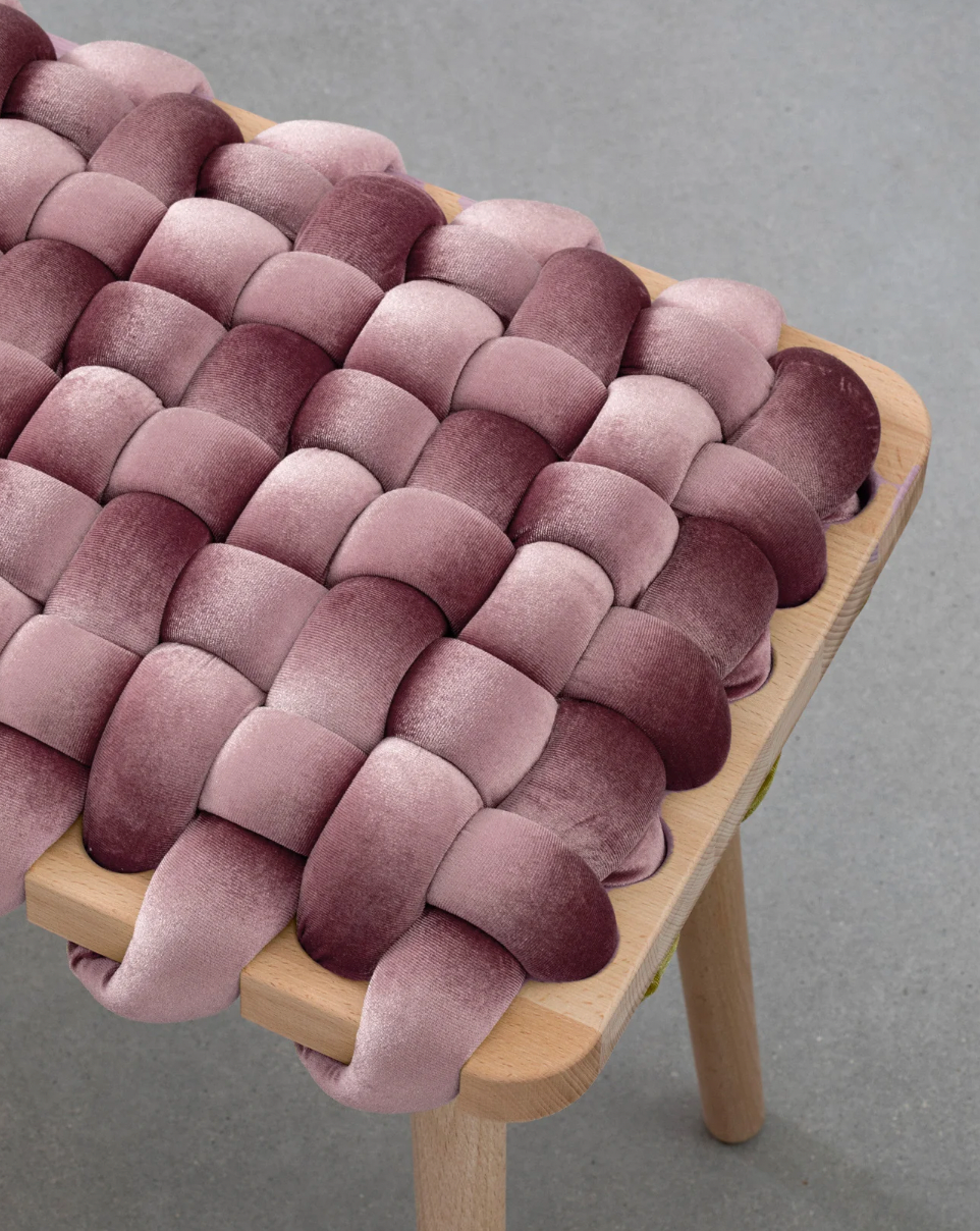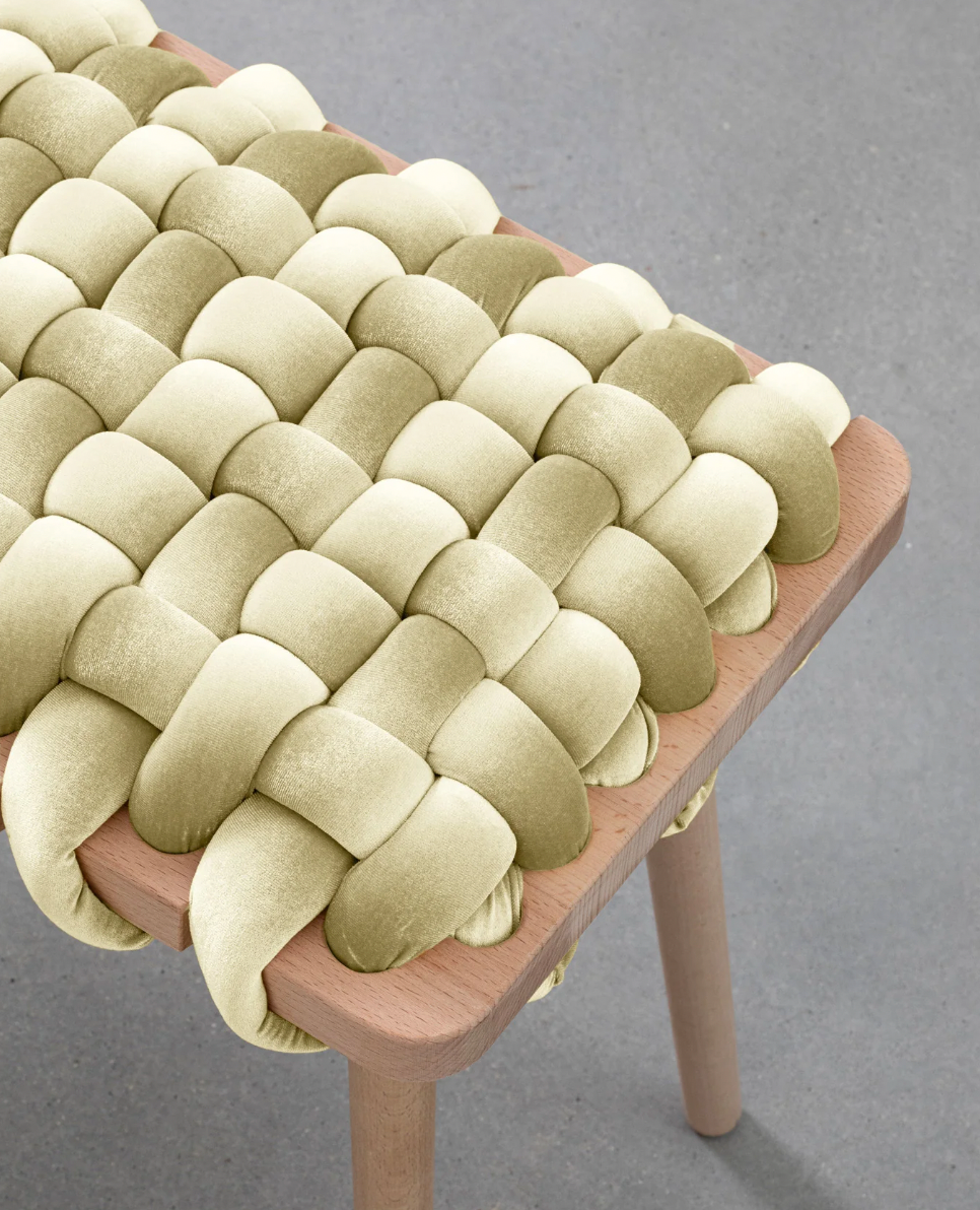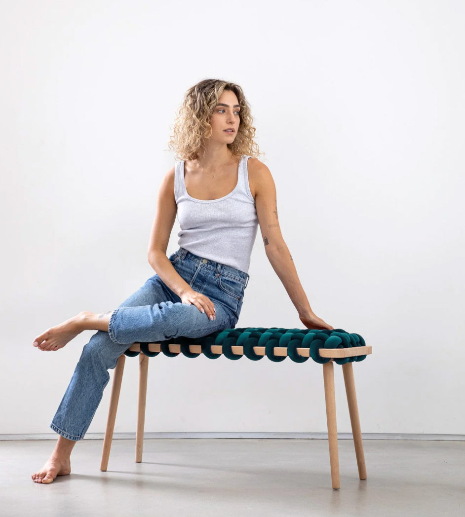 The woven bench is a meticulously crafted piece that adds a playful yet sophisticated touch to any entryway or living area. Using a unique weaving technique, this handmade bench combines soft velvet fabric and durable Beechwood for both aesthetic and functional value that will endure for years to come.