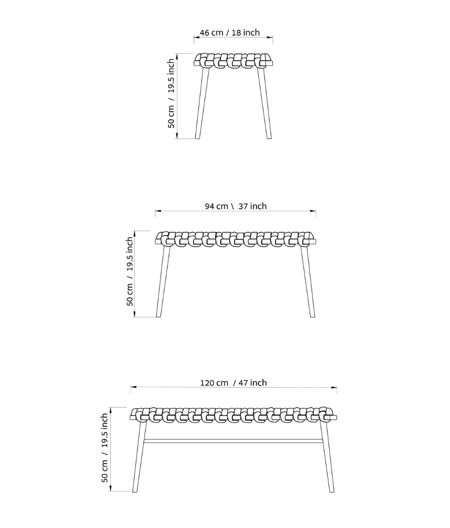 Knots Studio Woven Bench 47.5” x 12.5 inches