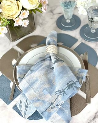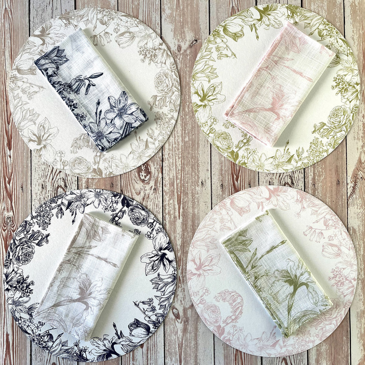 Featuring flowers, birds, and butterflies in soft pastel hues, this collection is full of life. Made with 100% cotton, this beautiful print is also available as runners, tablecloths, placemats, coasters, trays, and bath accessories.