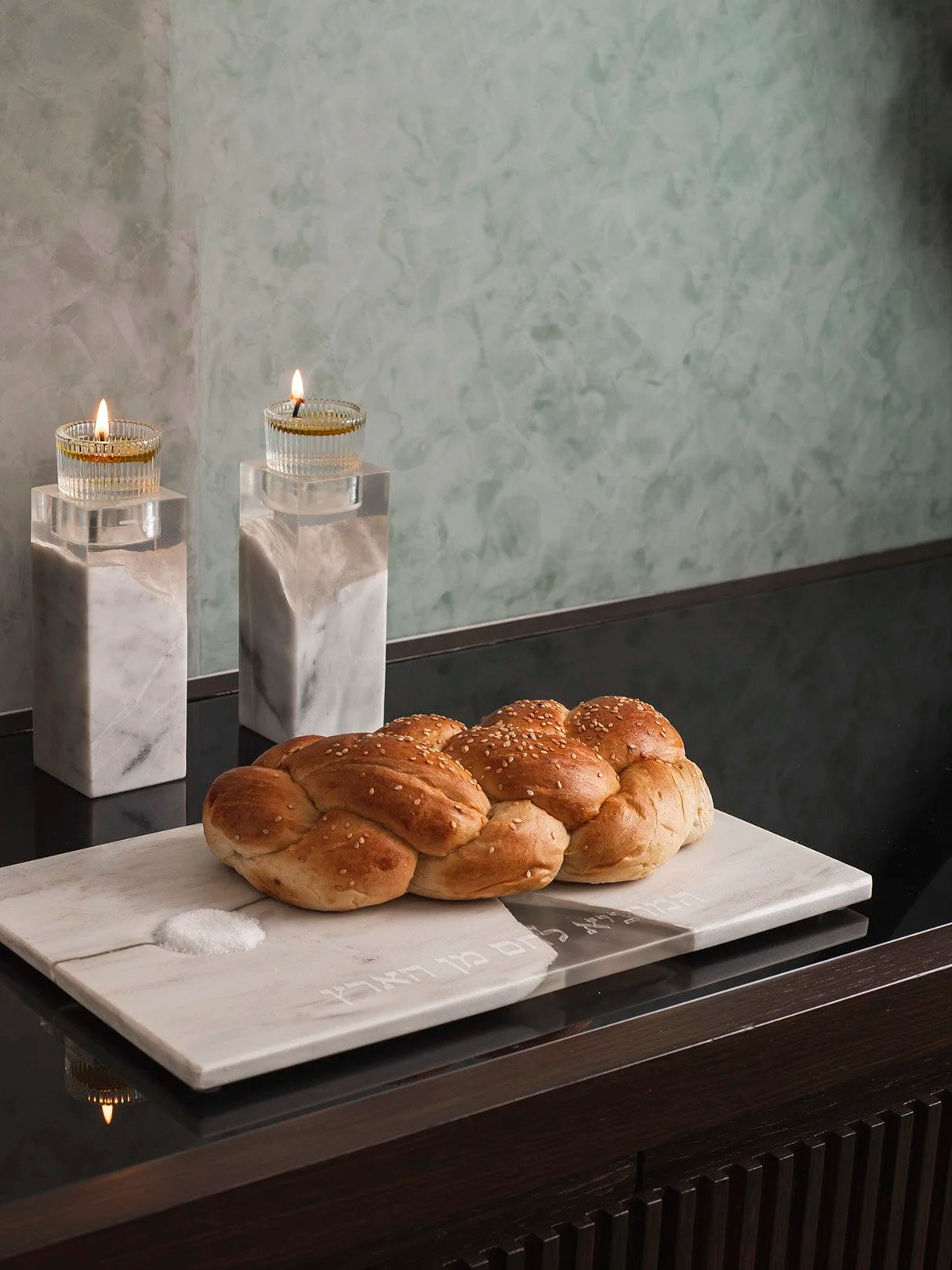 Embroidered Leatherette Lucite and Glass Top Challah Board