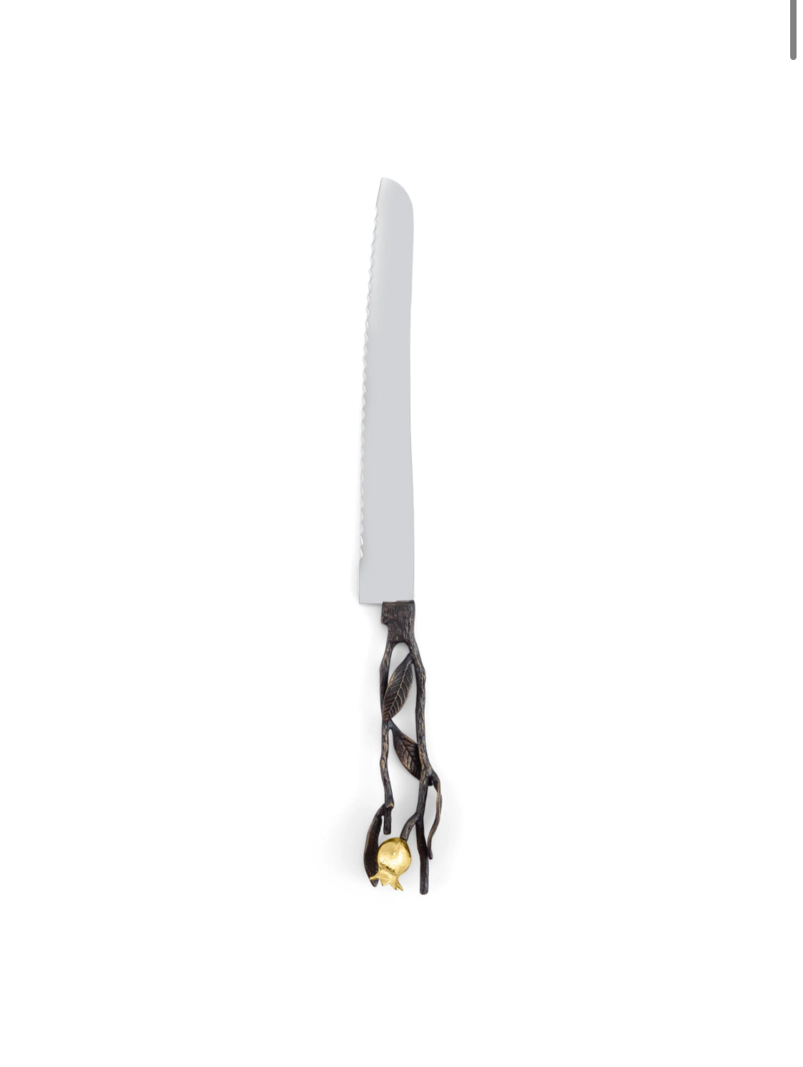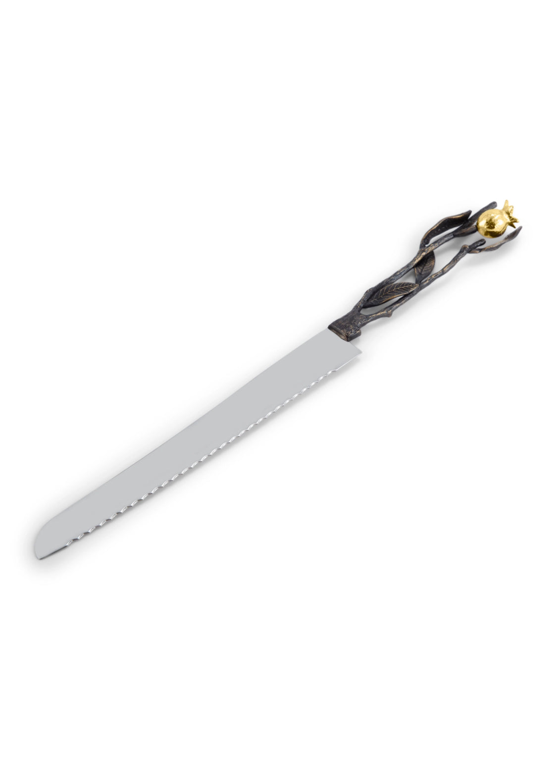 Challah Knife with brownl resin handle Length 14 inches and width 1 inch.
