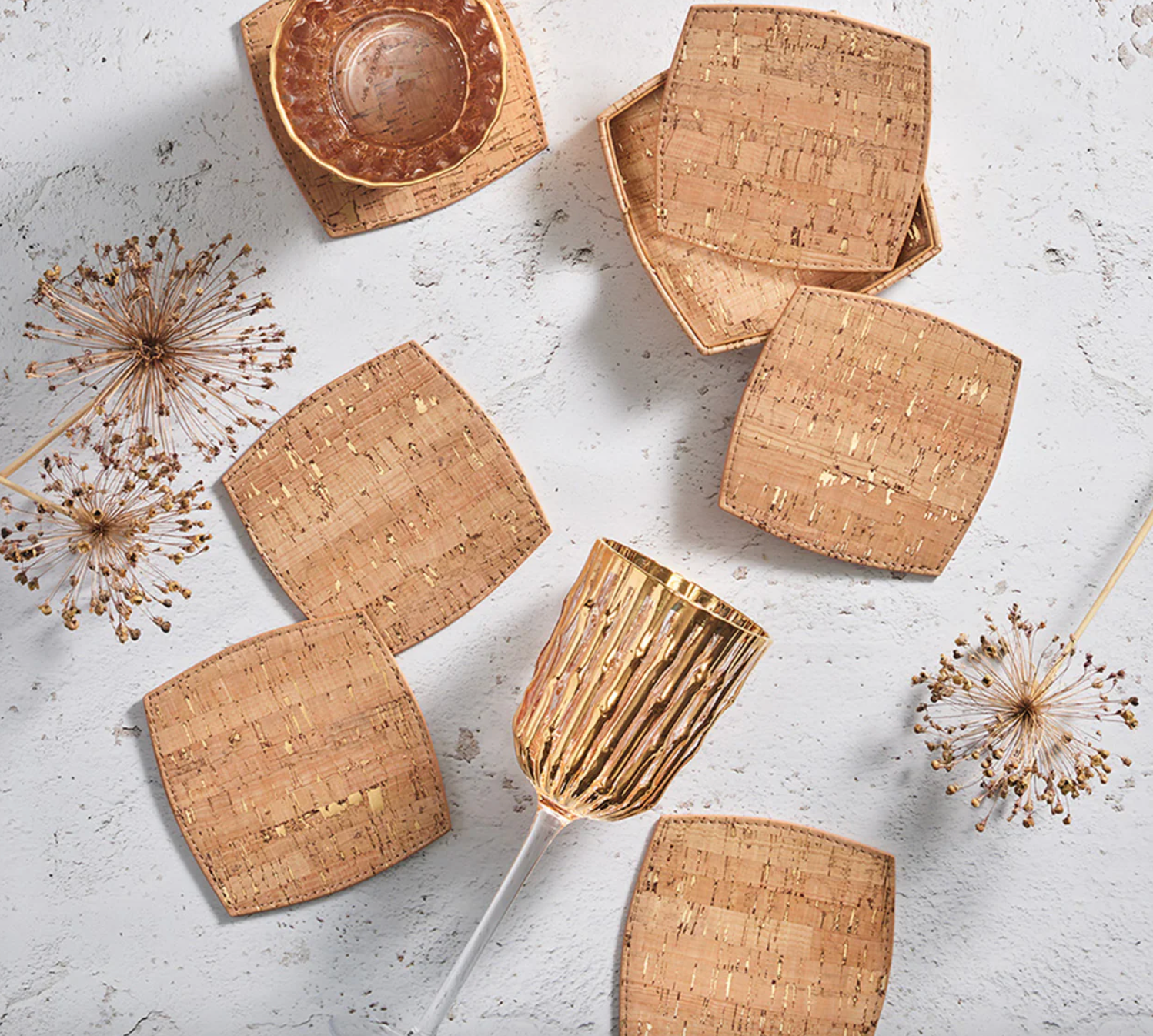A perfect companion to the matching placemat, the Whistler Coaster Set blends artisanal aesthetics with high performance. Crafted from durable cork and lightly accented with flecks of gold, each coaster complements everything from casual drinks to refined occasions. With heat resistance, absorbency, and a non-slip backing, these chic coasters add an organic layer of texture and ease to any surface.