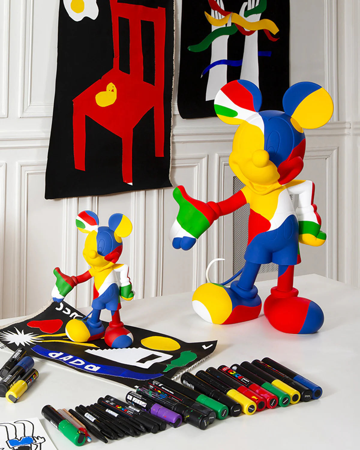 "I've revisited Mickey Mouse so many times in my life through my fashion and art. His unique and timeless silhouette has always inspired me. Today, with Leblon Delienne, I was finally able to crystallize him into a sculpture of color, camouflage, and colorblocking, two founding codes of my style." Jean-Charles de Castelbajac