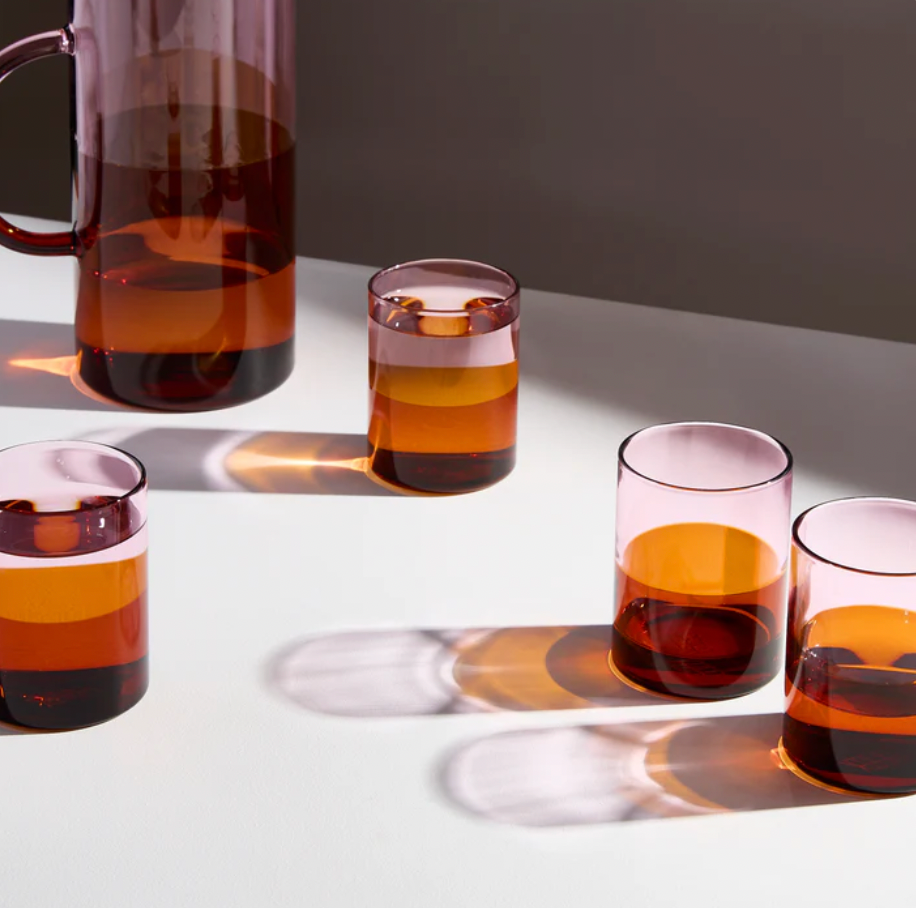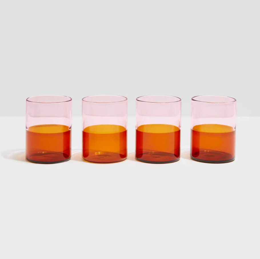 Fazeek Set of 4 Pink & Amber Two Tone Glasses