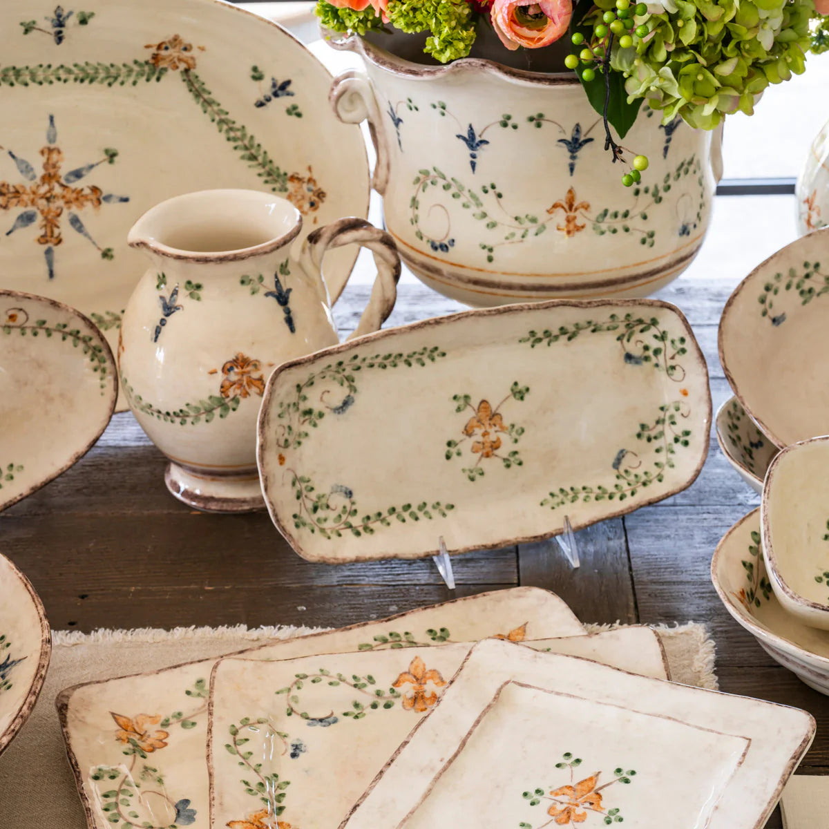 Easter chic! Bunny Trail Easter table linens feature playful embroidered details with a bunny, a chick, and Easter eggs in one corner of the napkin and thoughtfully placed along the runner, while a trail of green dots runs throughout. These embroidered Easter napkins and table runners are colorful, fun, and a cheerful way to dress your table for Easter and spring entertaining.