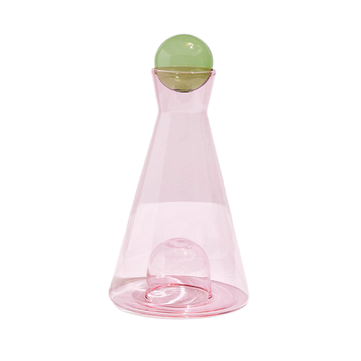 VICE VERSA CARAFE - PINK + GREEN combine elegant, sculptural qualities with functional spheres. The interactive design of the carafe allows the sphere to rest inside the glass-blown mouth or sit playfully inside the base. These one-off pieces can be used as a centrepiece on your table or mantle and also act as the ideal serving vessel.