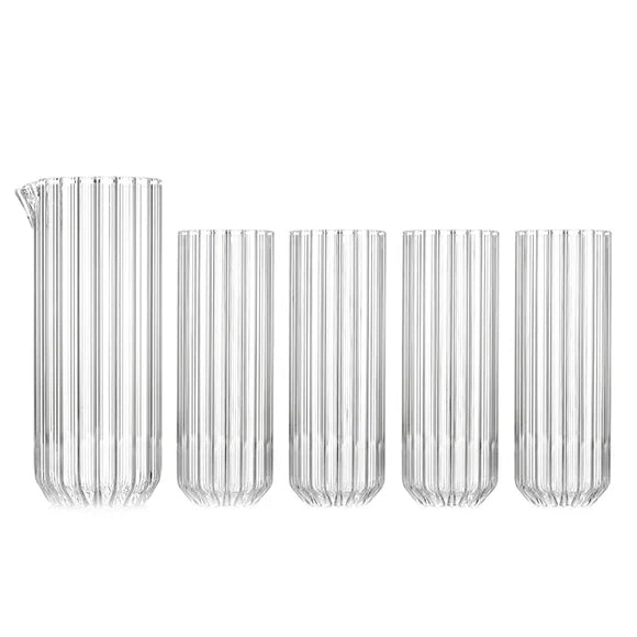 Dearborn Carafe is a fluted glass pitcher ideal for serving refreshments of all types, as well as mixing cocktails. With timeless elegance the pitcher promises to be a winsome addition to your bar, and pairs well with the Dearborn Collins Glasses.