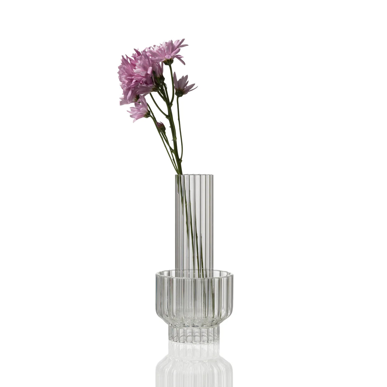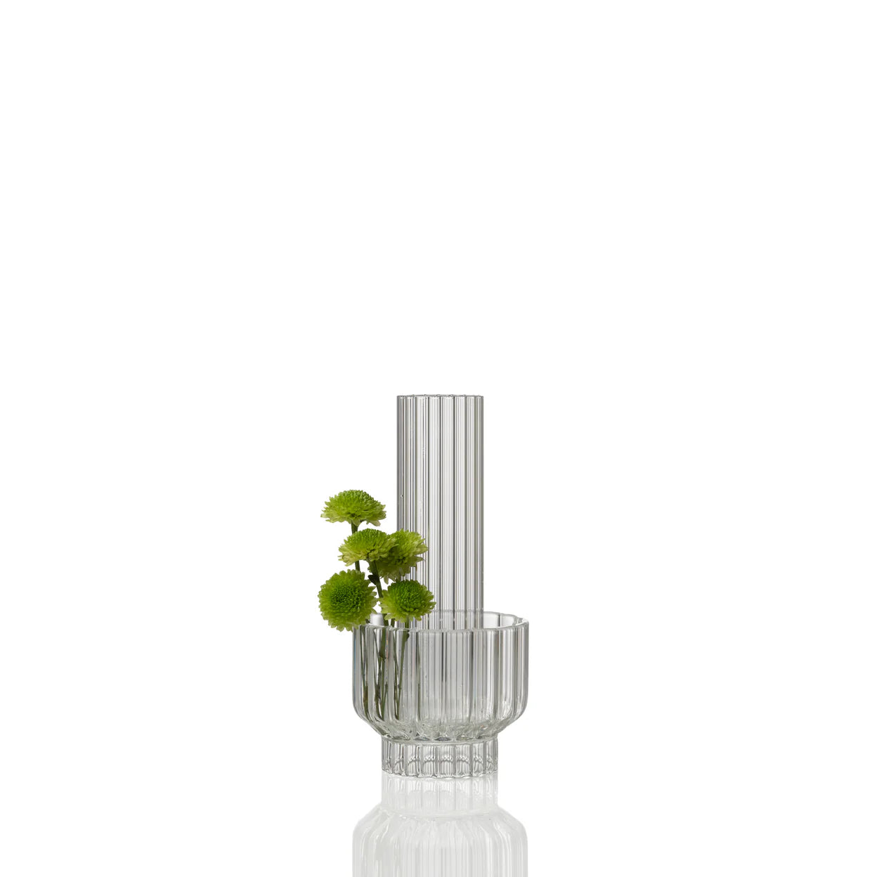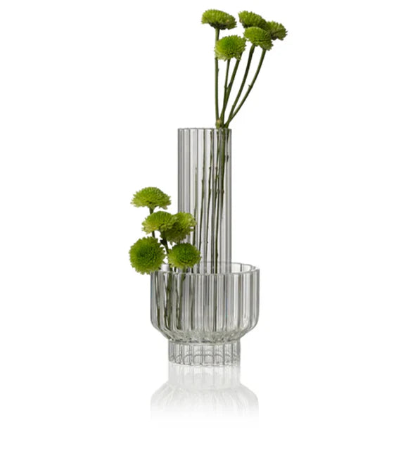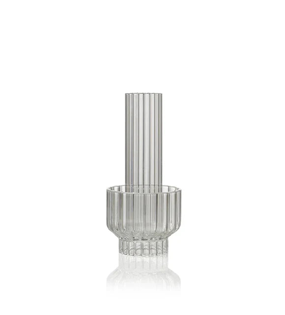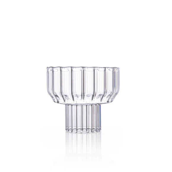 The Dearborn was designed specifically for the designer’s home, fulfilling her wish for a low, stemless, informal glass. The design is well-balanced by its intricate interior fluting set against the minimal, straight wall and distinct facet where the glass meets the table.