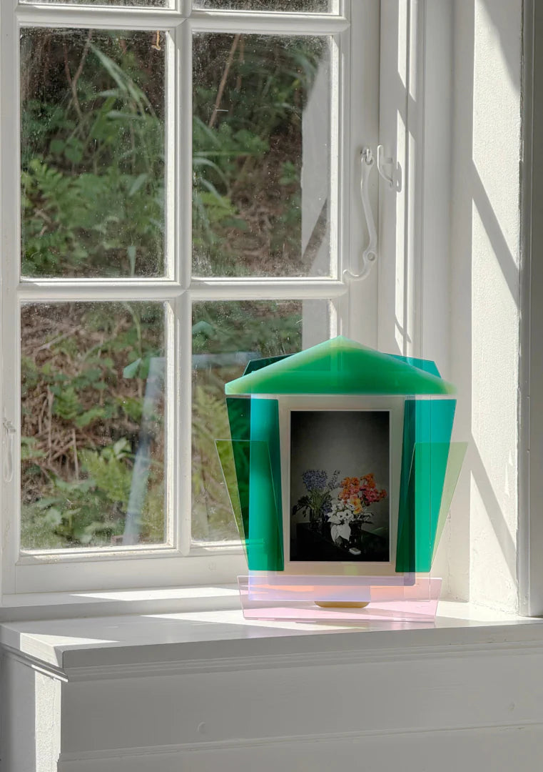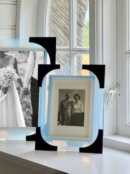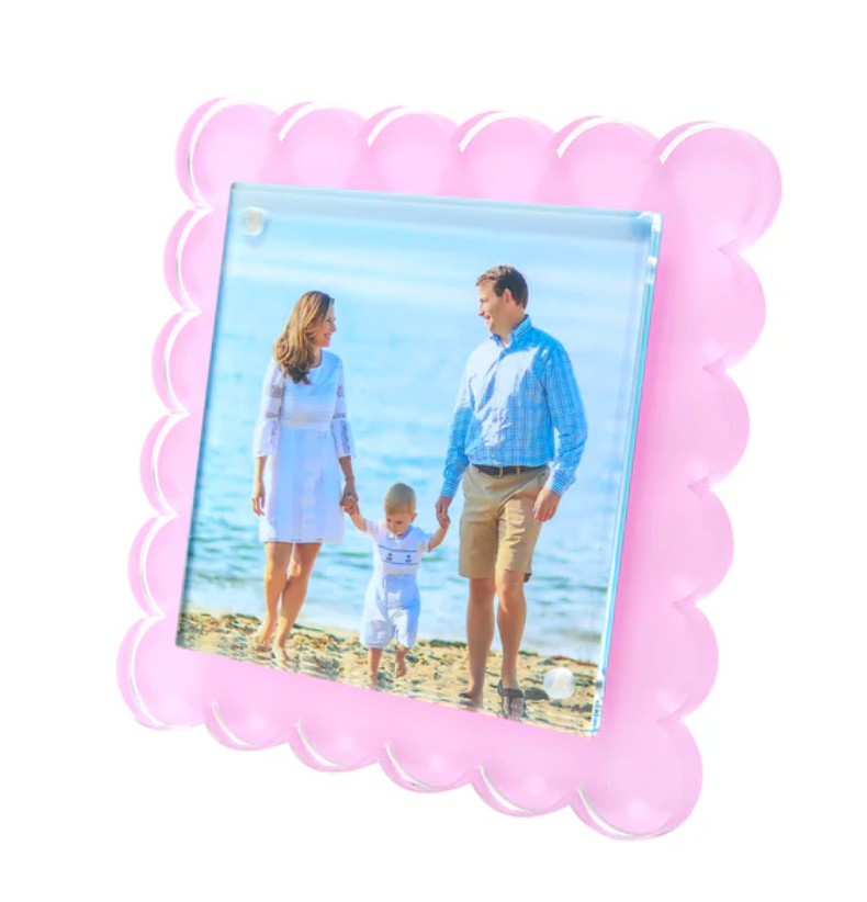 The AVF Bolt Acrylic Snap Frames in pink get their name because they're a snap to use and the unique shape was inspired by a bolt. Magnetically snap the rear stand onto the frame for either a portrait or landscape configured photo. Then, simply place your photo between the two sheets of acrylic and then snap them together by lining up the two small magnets.