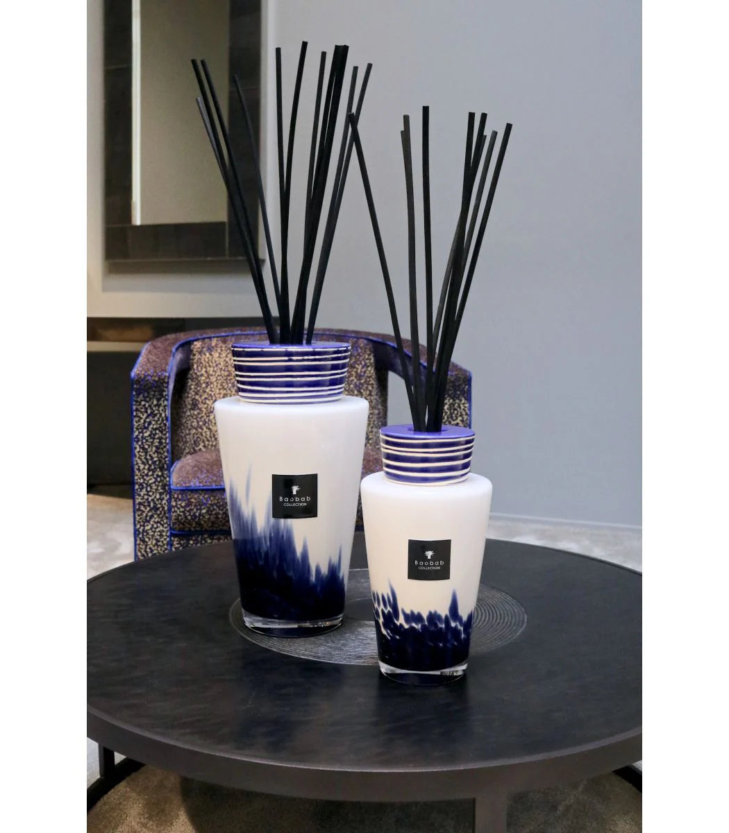 This is a limited edition luxury gift box composed of 25 exclusive candles and aromas: Enchanted Odyssey. The design is inspired by the Sicilian legends of "Colapesce" (the man who lived by the sea) and the constellation of Marvén, known to be a guide for astrologers and navigators. Different species of the underwater world are silk-screened on each of the sails. With cobalt blue and gold coated colors, the lit wick reflects light through cobalt blue and gold coated colors creating a magical atmosphere. A true visual spectacle!