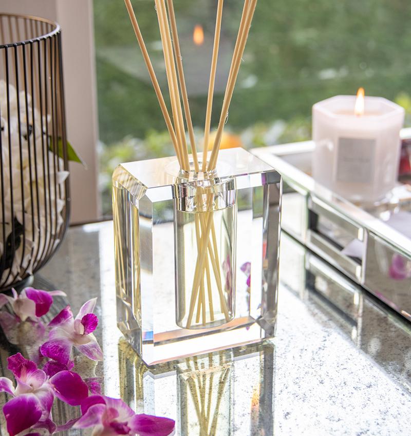 Crafted with premium quality fragrances and delivered in a beautiful art glass vessel with hand-cut reeds, our Feu de Bois, Ski House diffusers fill your home with luxurious fragrance.