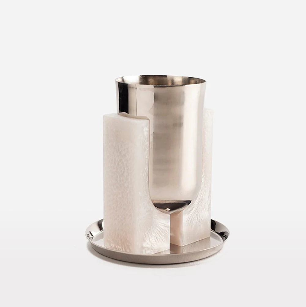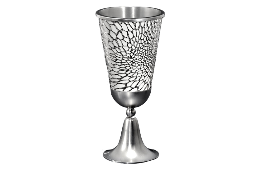 Designed and handcrafted in 1981 by Yitzchak Bier on the occasion of his firstborn son’s wedding, this Silver Kiddush Cup Set is overflowing with meaning and love. A bestseller, the crisp, elegant and sophisticated Kiddush Cup features the famous ‘hammered’ finish found in BIER designs. Paralleling the design of the Goblet, the Silver Plate also features the hammered finish around the rim.