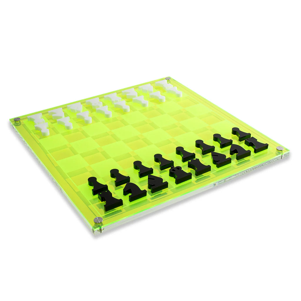 The Neon Word Guess comes with Blue letters and Neon markers. Assign one color to a letter in the right place, one to a correct letter in the wrong place and the last color to an incorrect letter.