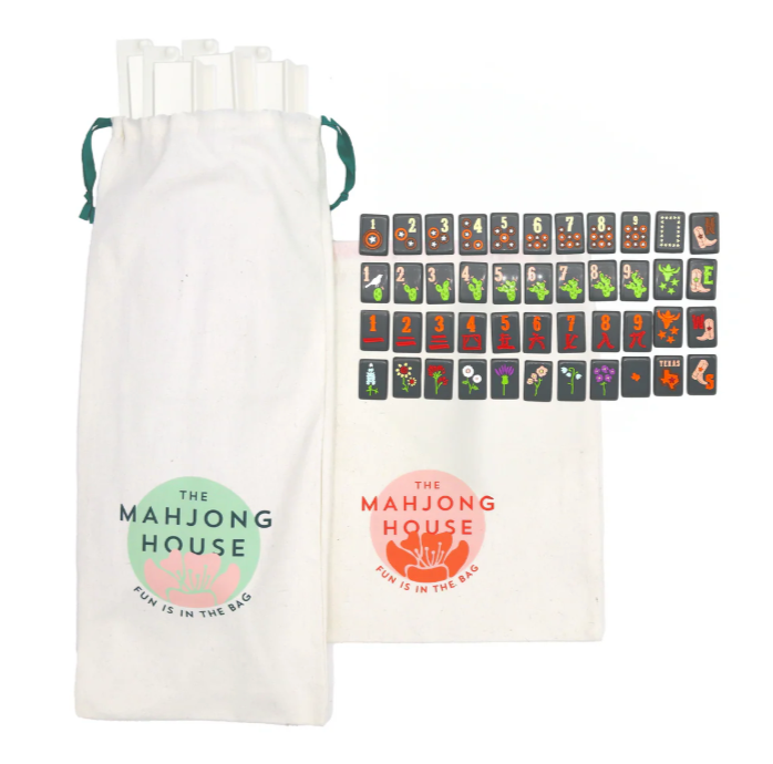 These gorgeous bags are meant to hold everything Mahjong: your tiles, your racks, even your mats. In a set of coordinating blues.