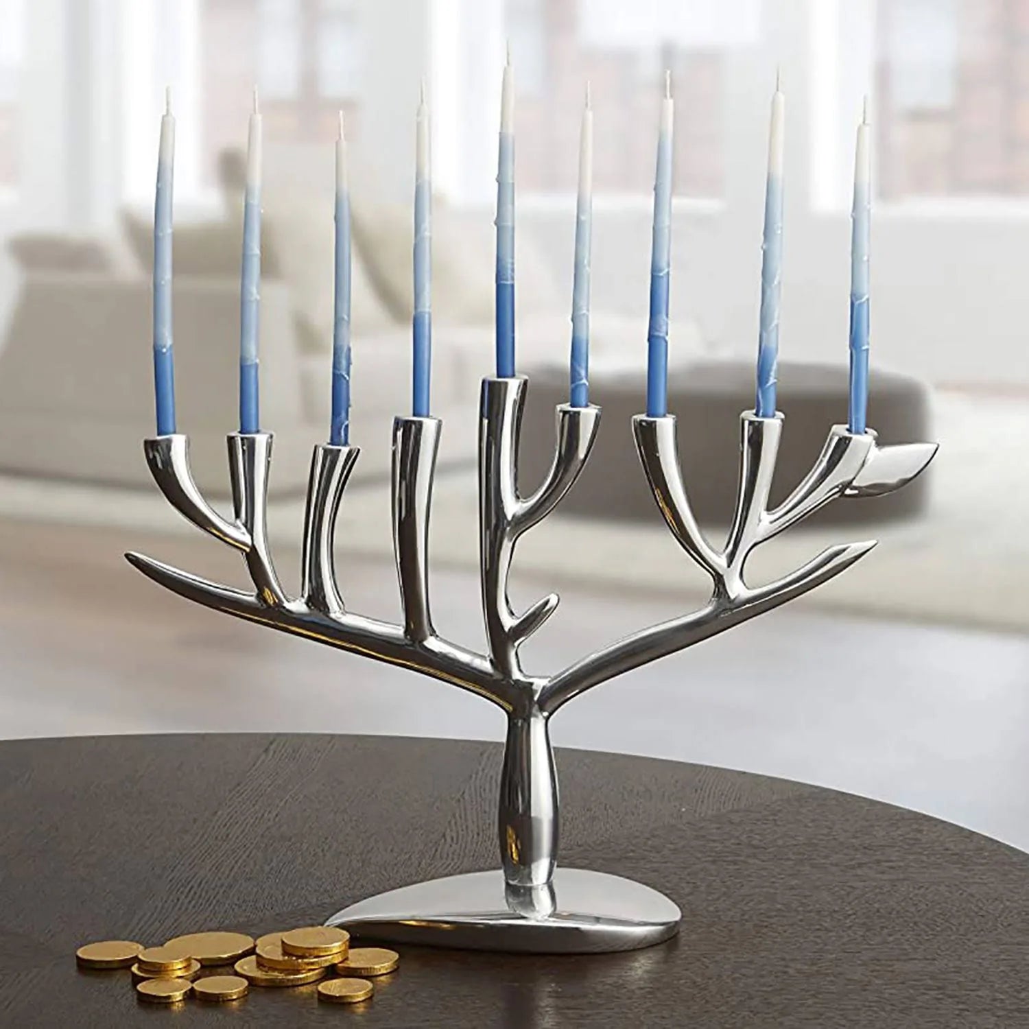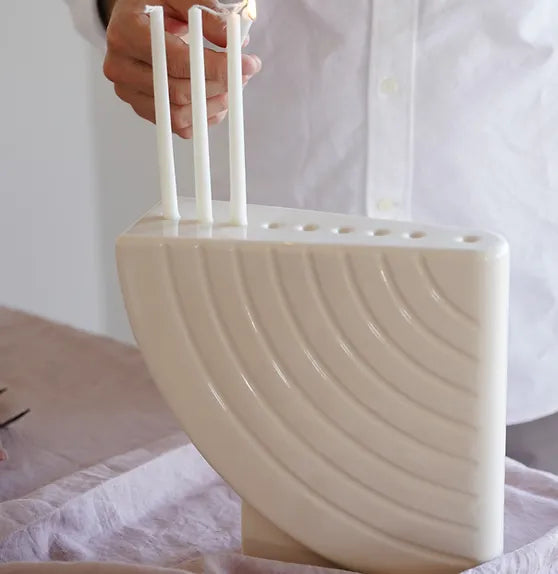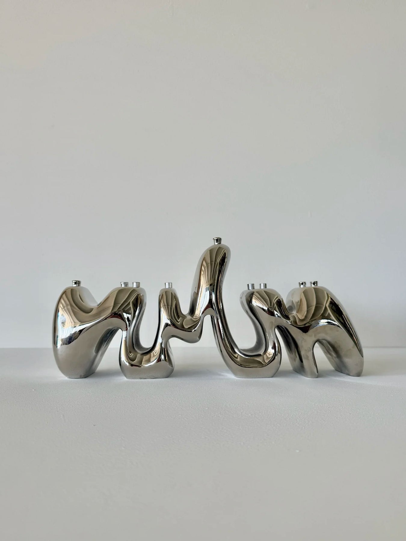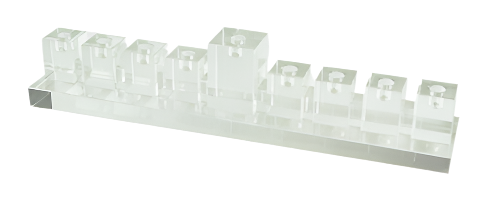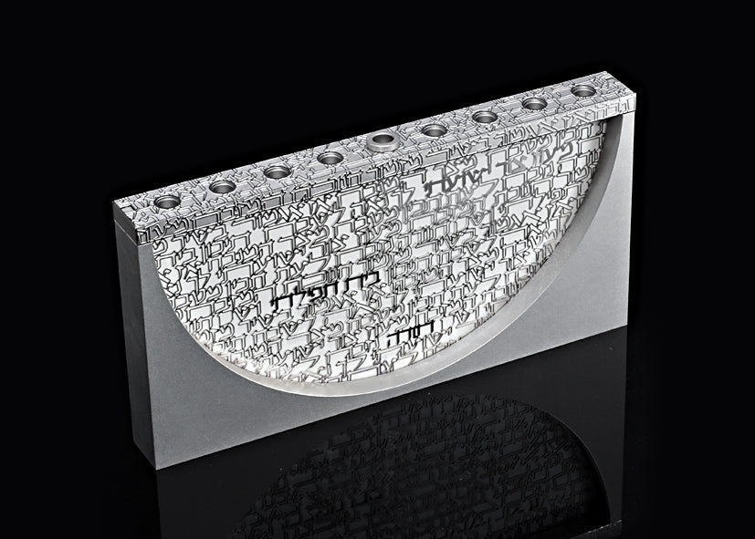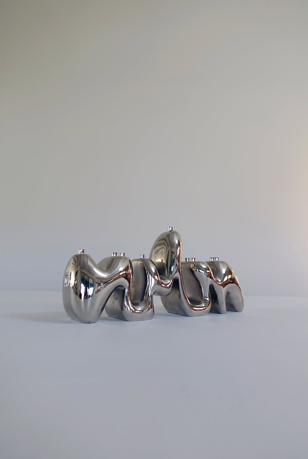 Designed to accommodate oil vials, this Hanukkiah can also be used as a centerpiece on a table, a shelf, or a mantelpiece.