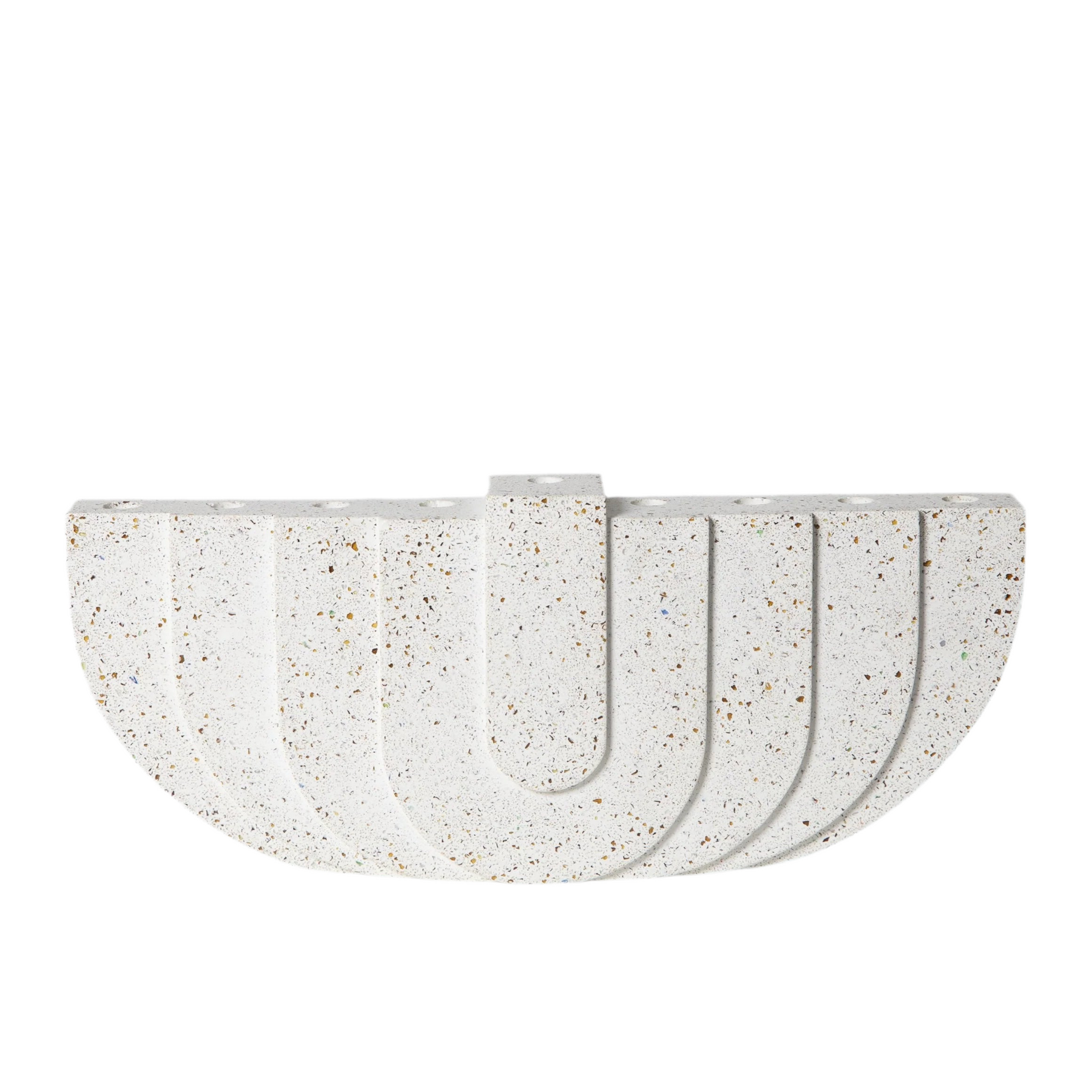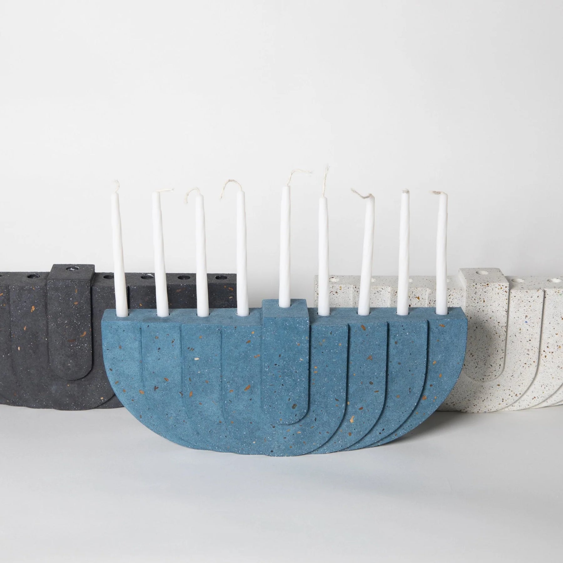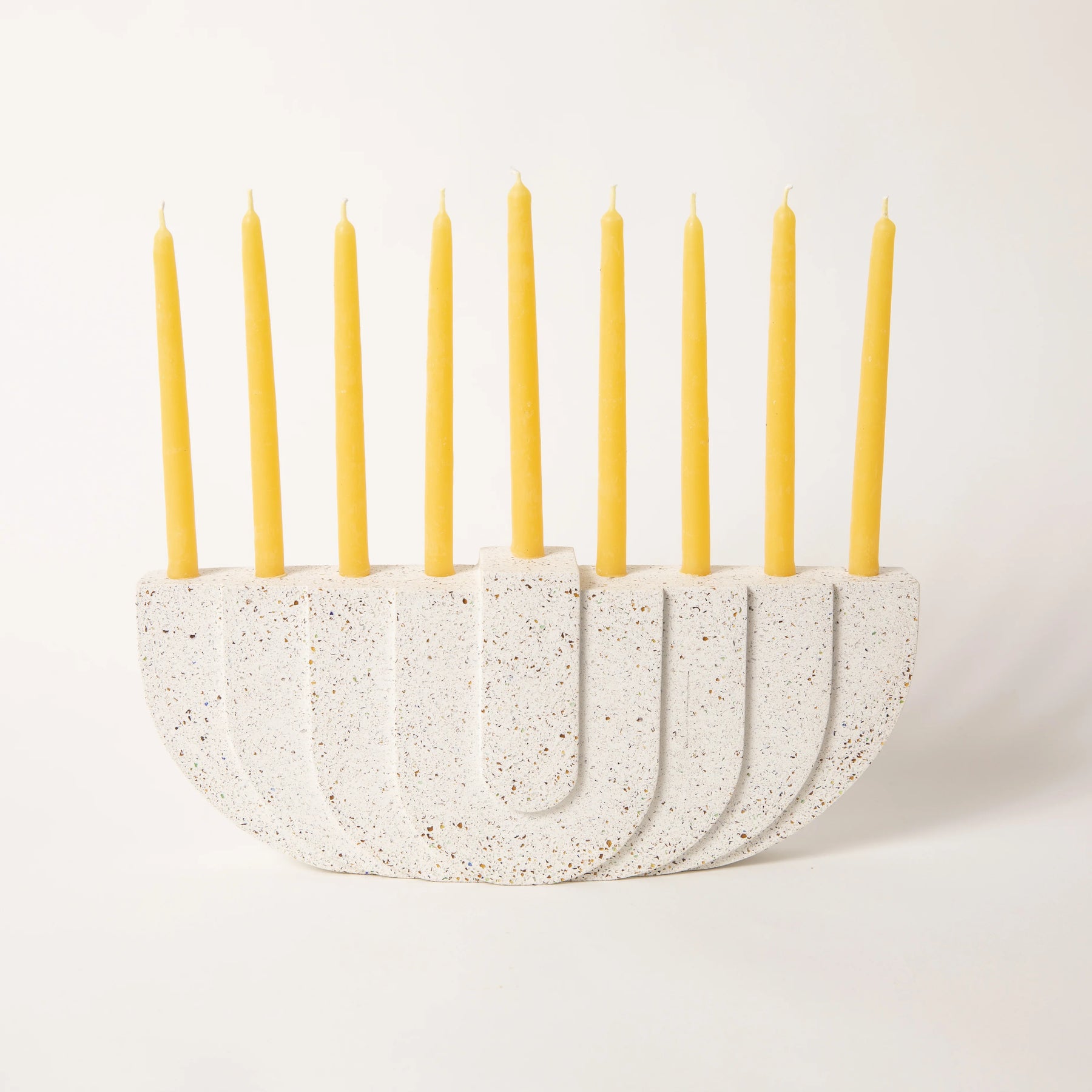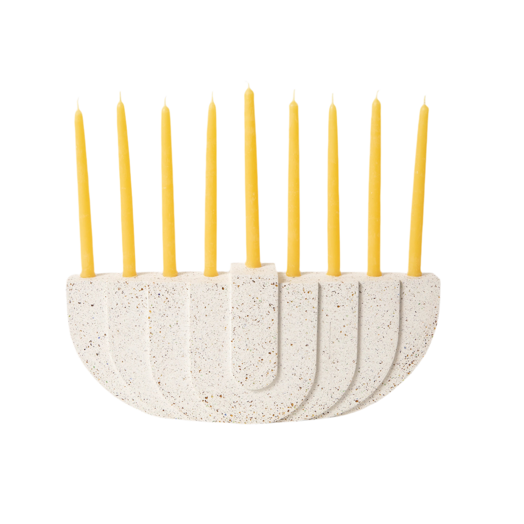 Designed to accommodate oil vials, this Hanukkiah can also be used as a centerpiece on a table, a shelf, or a mantelpiece.