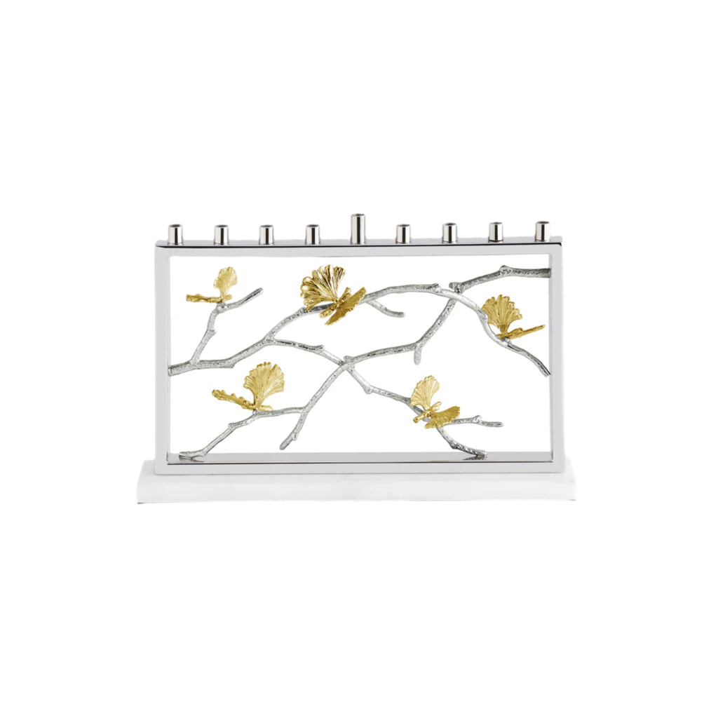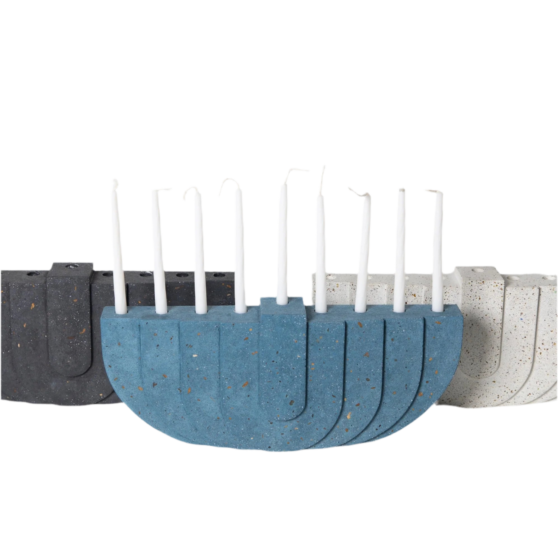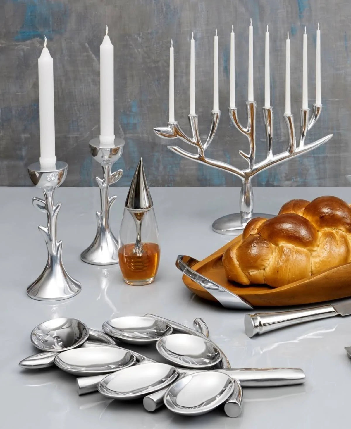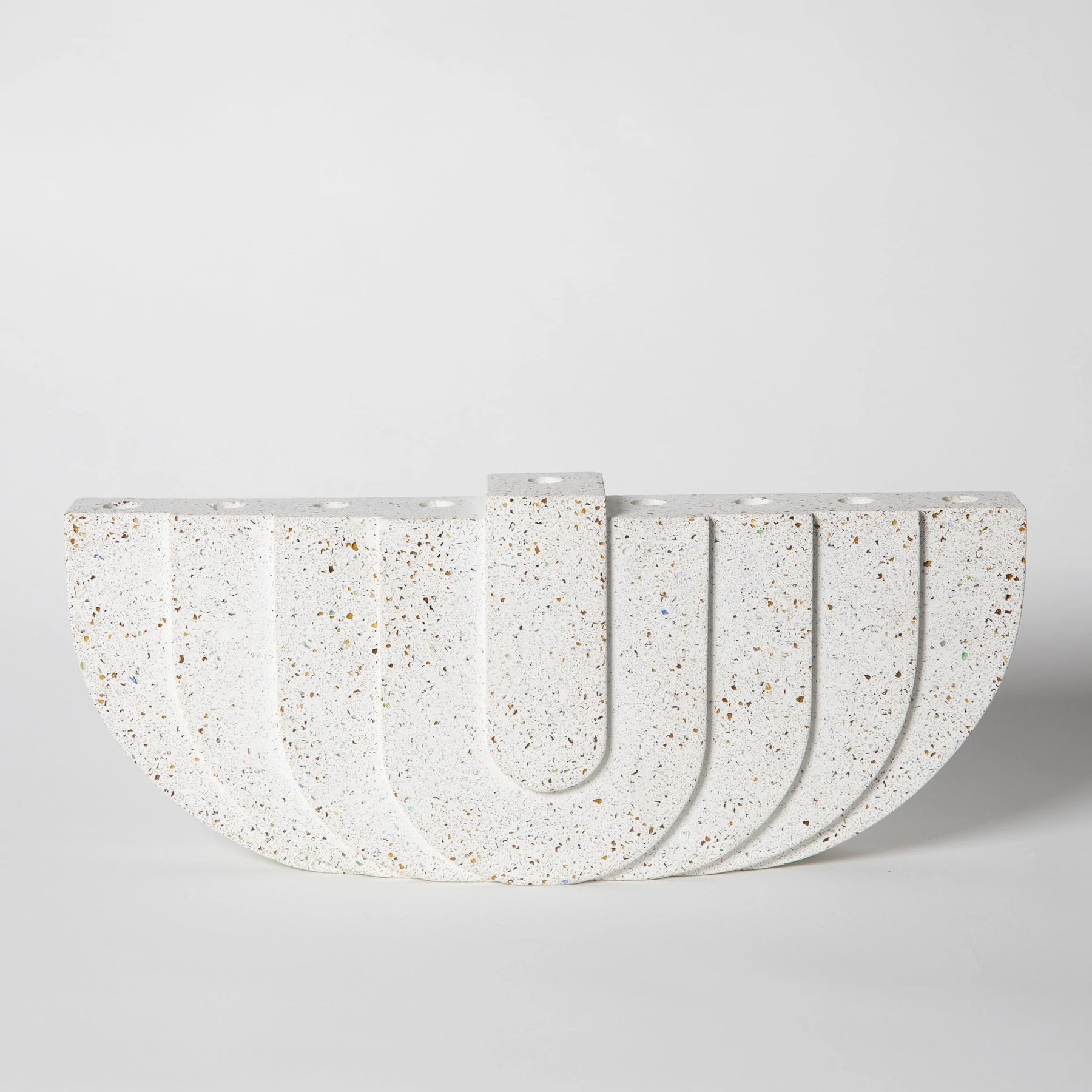 Designed to accommodate oil vials, this Hanukkiah can also be used as a centerpiece on a table, a shelf, or a mantelpiece.