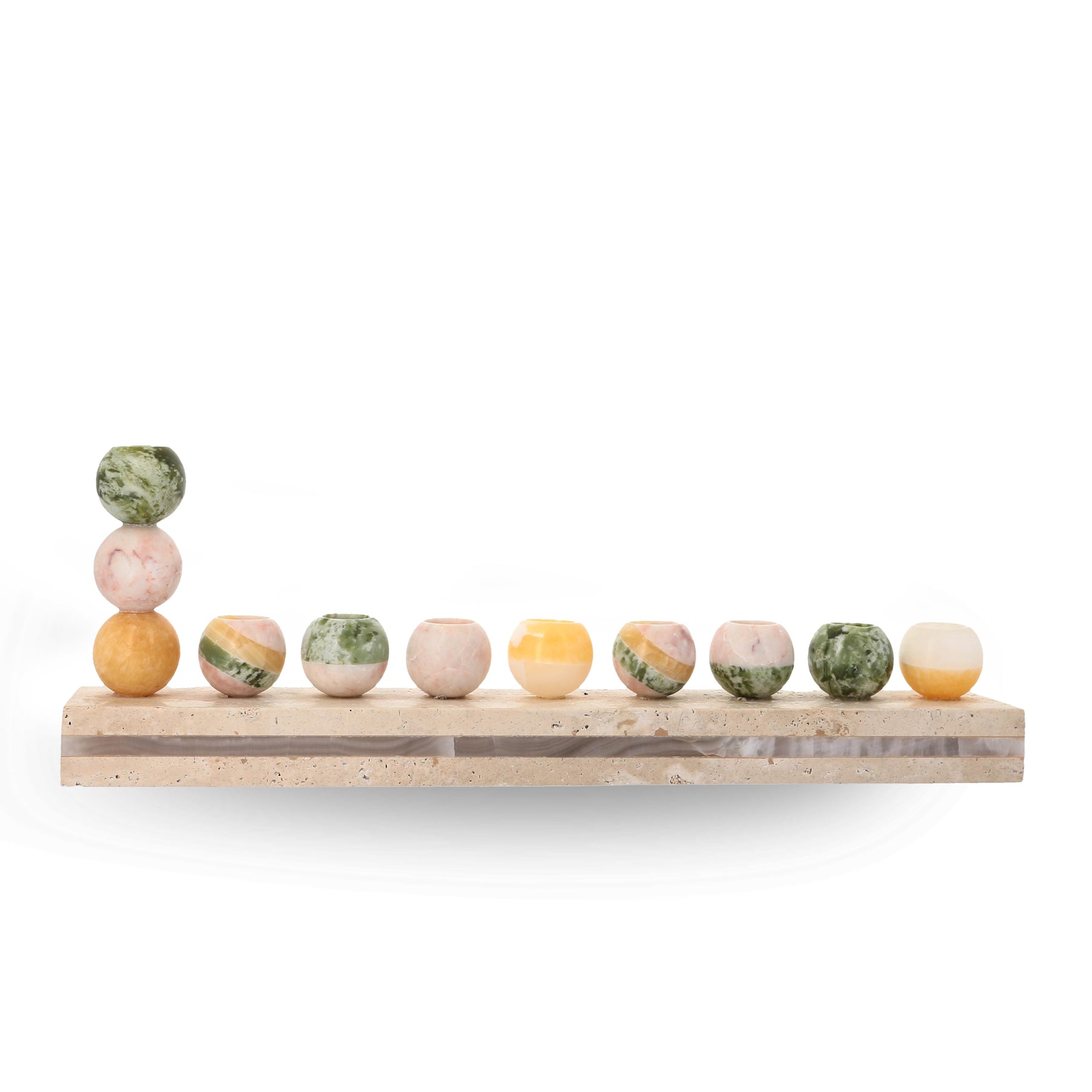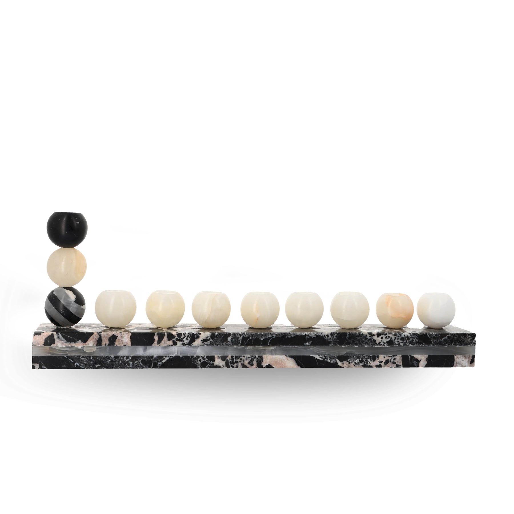 This Hanukkiah (a nine-branched menorah used during the Jewish holiday of Hanukkah) in Grand Antique marble embodies a subtle alliance between contemporary design and exceptional craftsmanship.