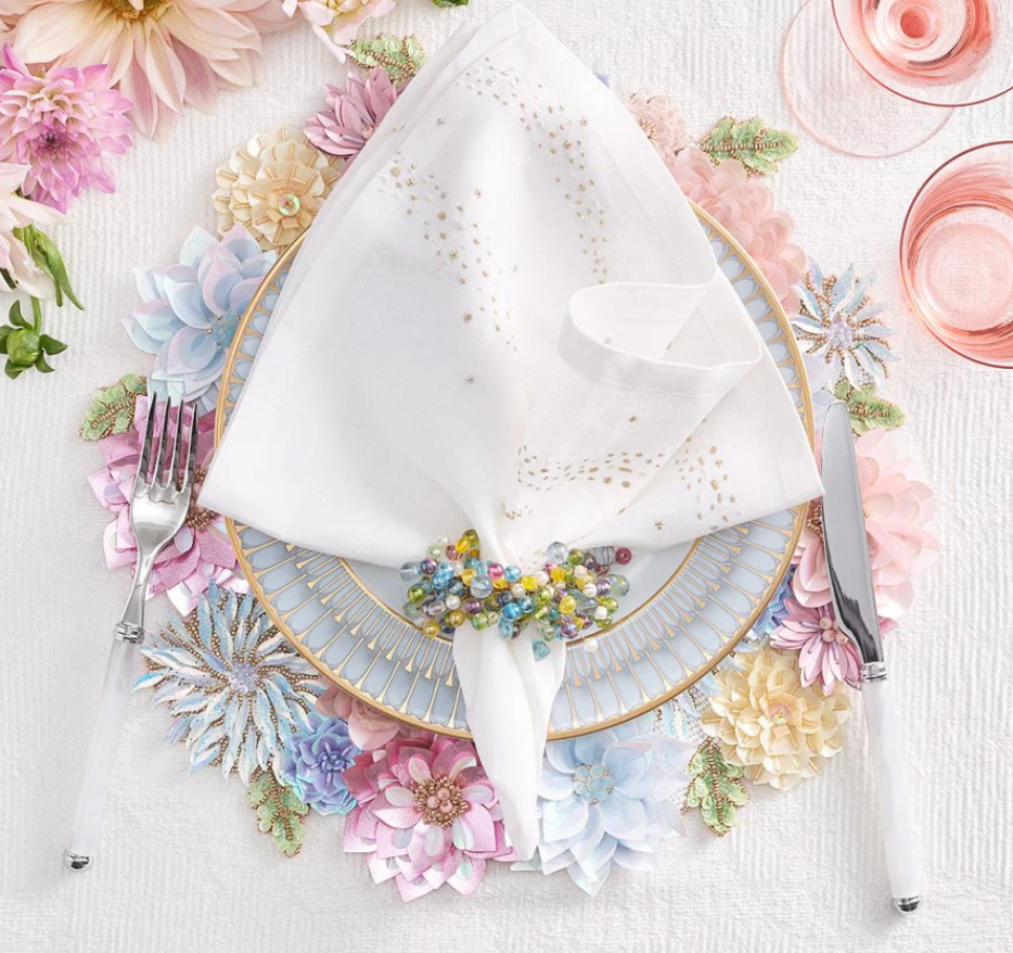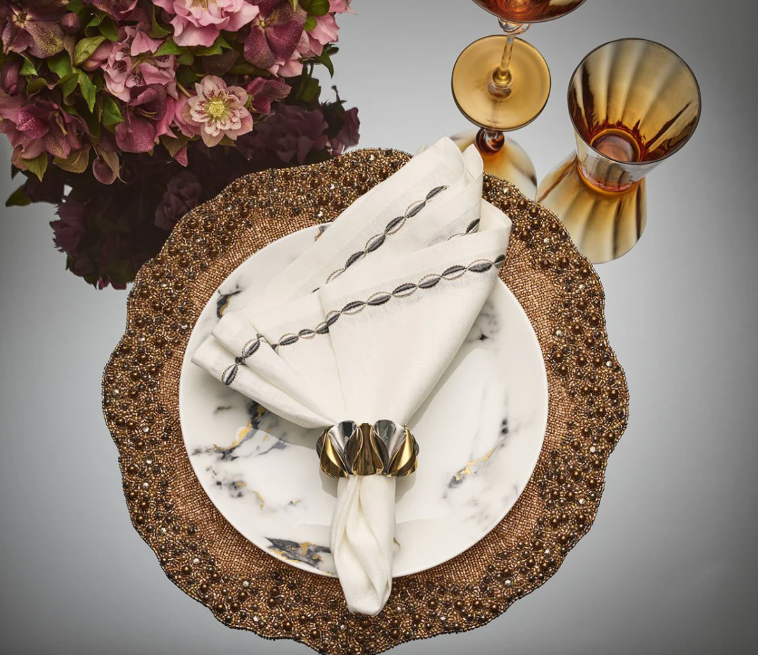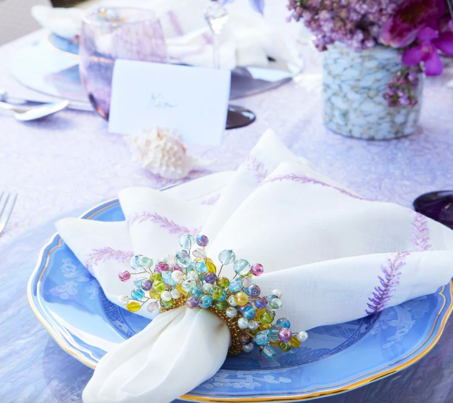- Use a soft toothbrush with mild soapy water for plastic and glass beaded napkin rings, if necessary.