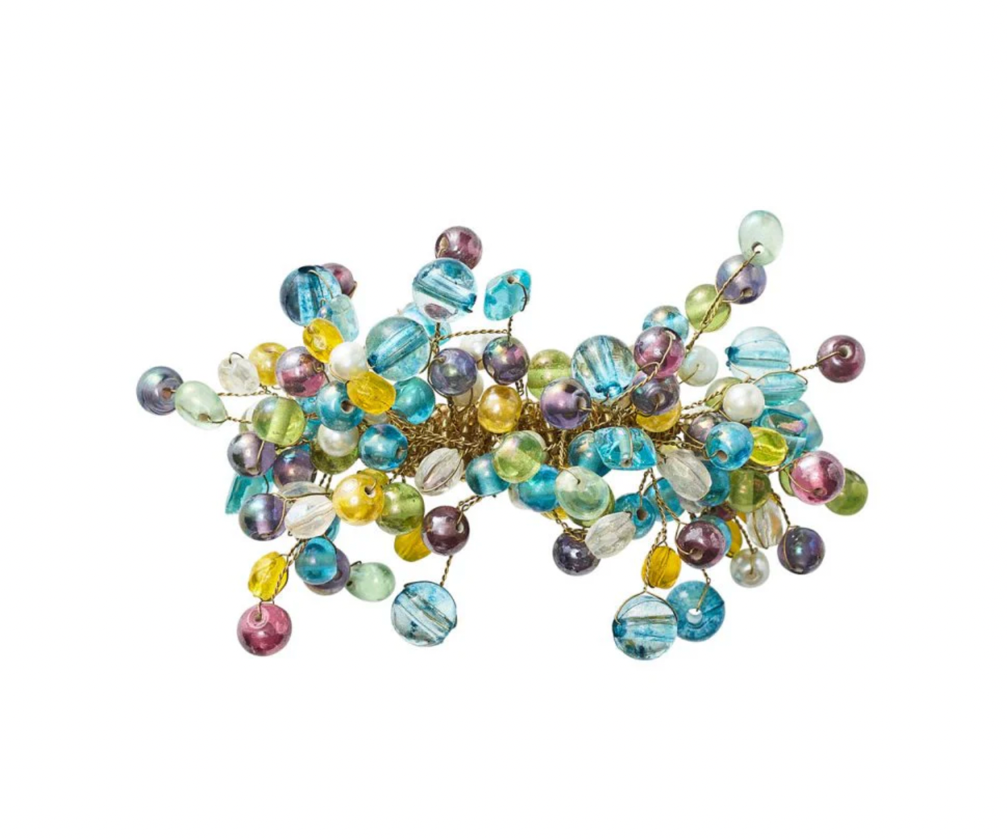 MATERIALS: 50% Plastic, 20% Metal, 15% Pinecones, 15% Glass beads