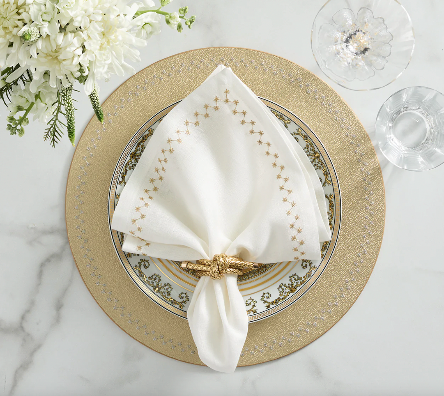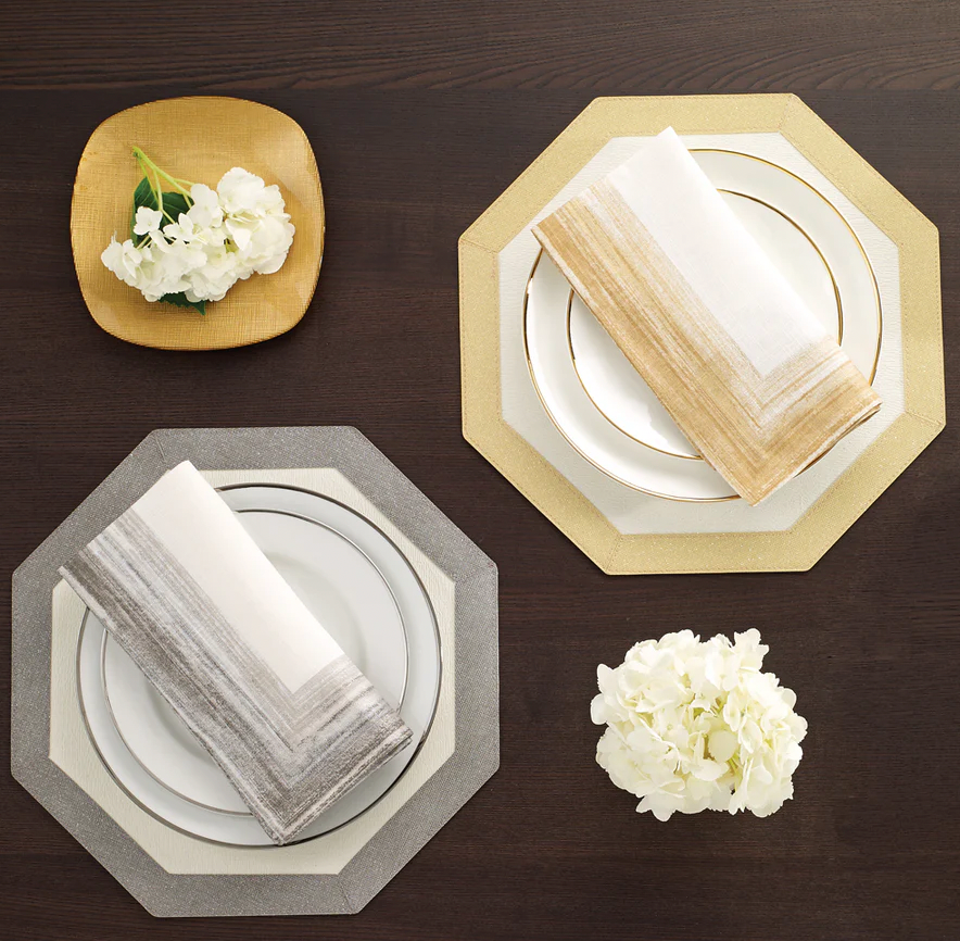 Our collection includes napkin rings made of natural gemstones, including agate, rock crystal, and pyrite. As naturally occurring stones, no two napkin rings will be alike, even within a set of four.