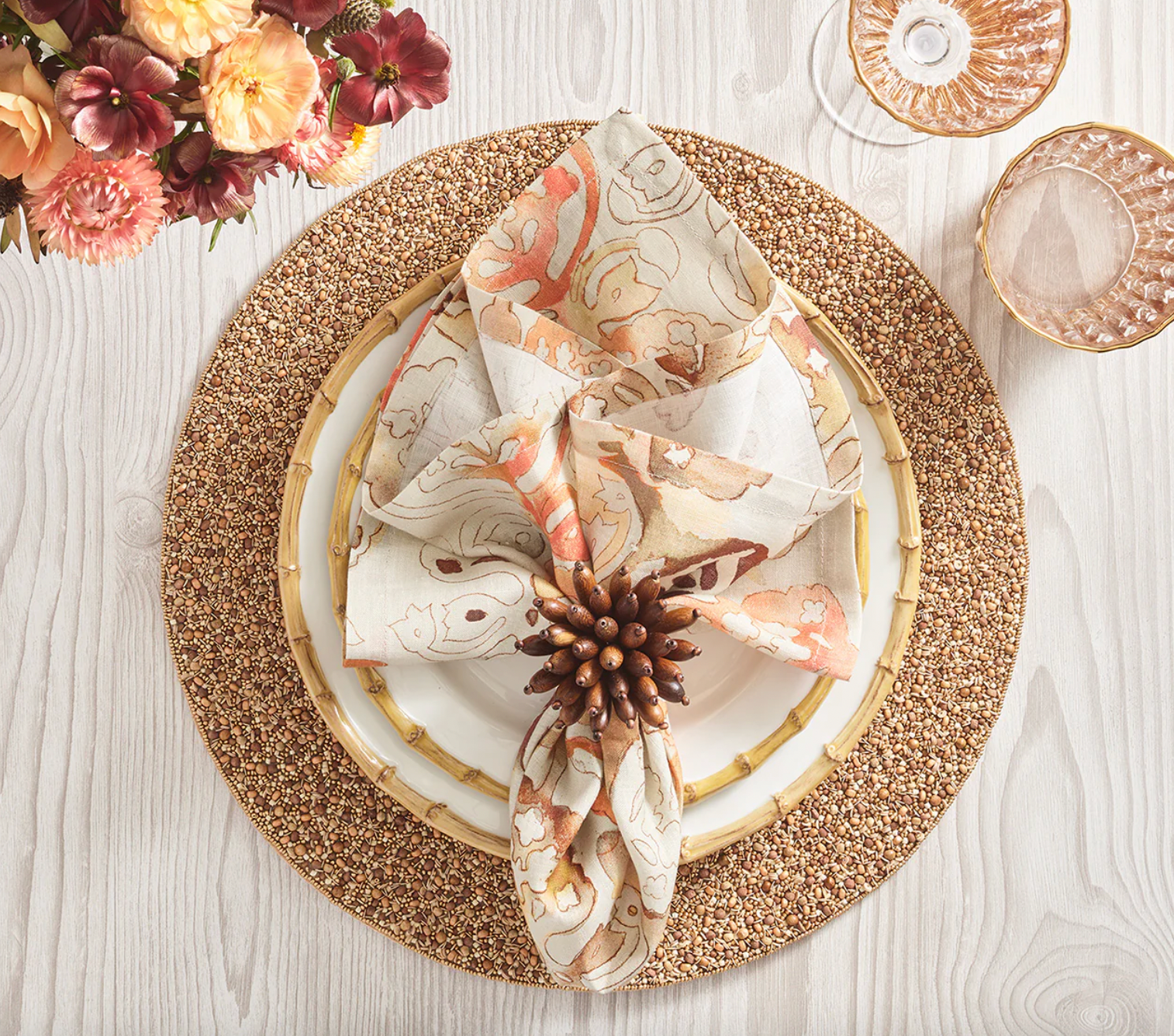 Our collection includes napkin rings that are hand-crafted from wood and stone, and may be hand-carved and hand-painted. This means that no two will be exactly alike.