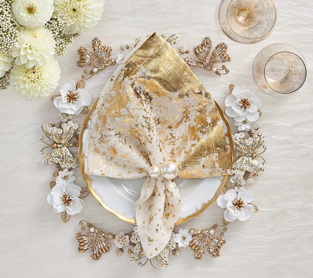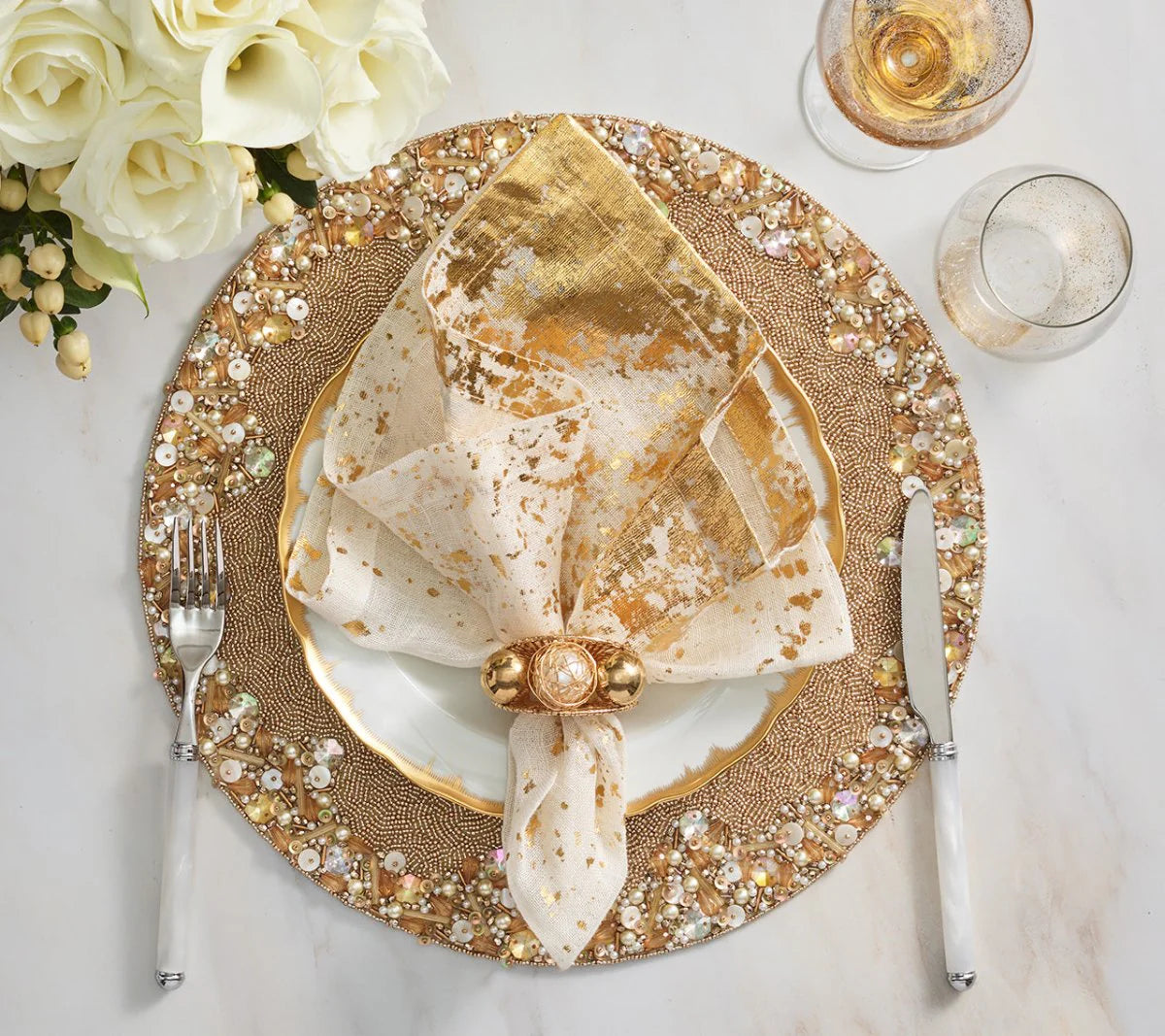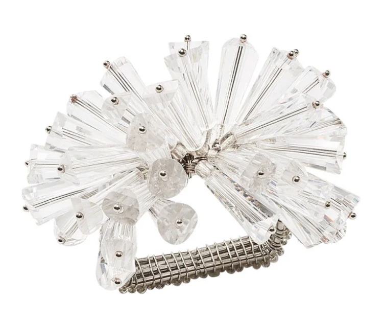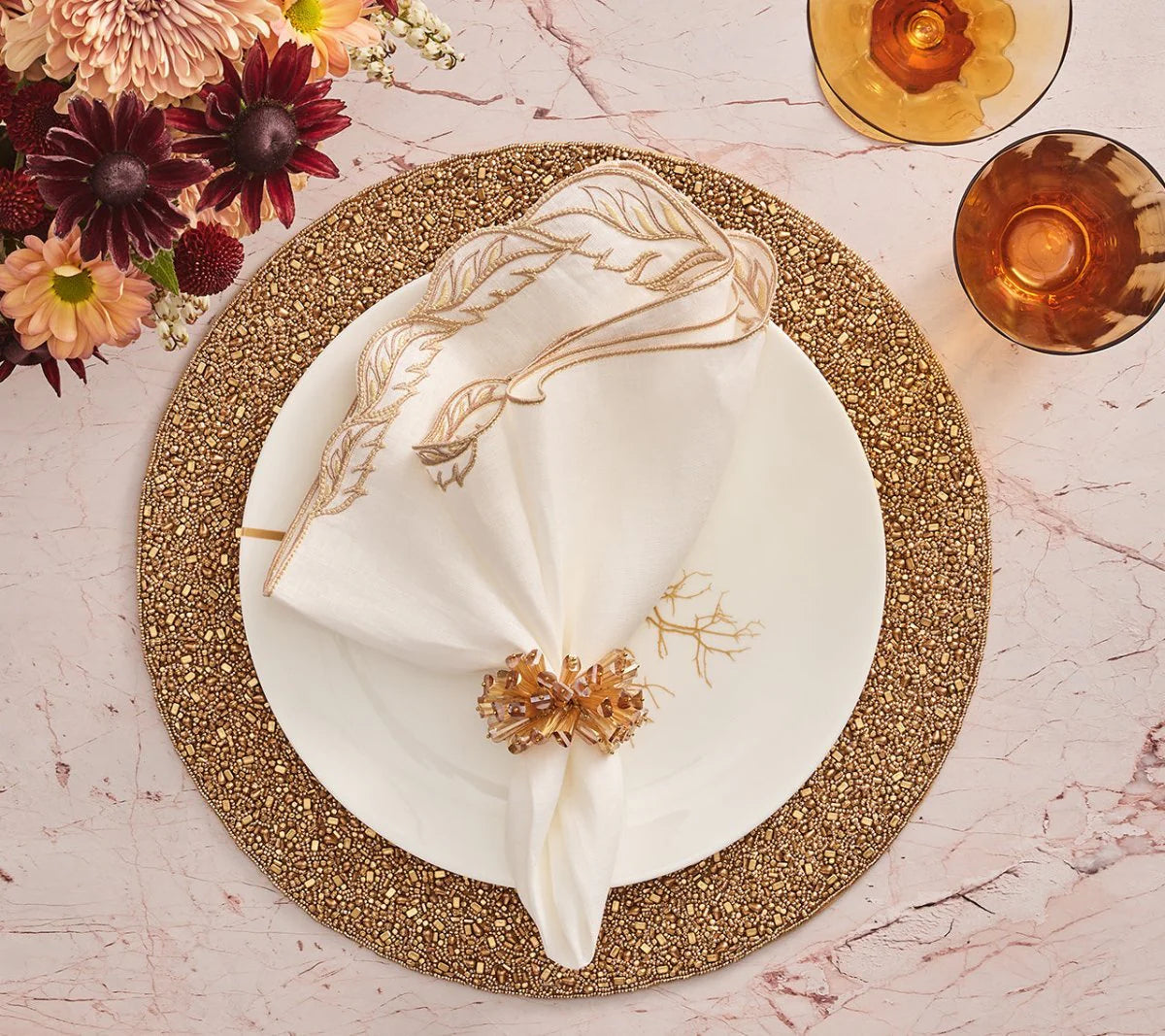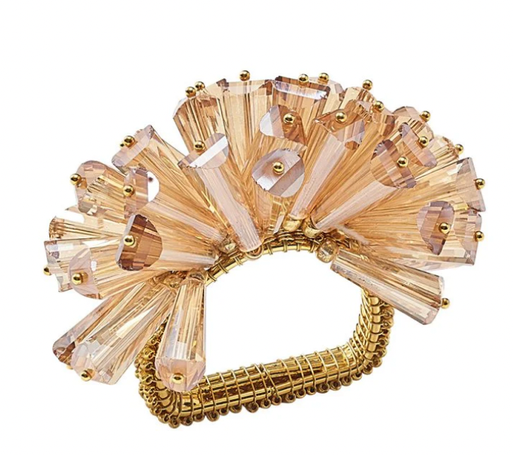 The mid-century inspired gold Astrid Napkin Ring is a show-stopper. This beautiful gold napkin ring features sea urchin-like spears in a deep gold tone. Set atop a square lucite ring, this versatile napkin ring will work well with sophisticated table settings, as well as for gatherings around the holiday season because of its metallic sheen.