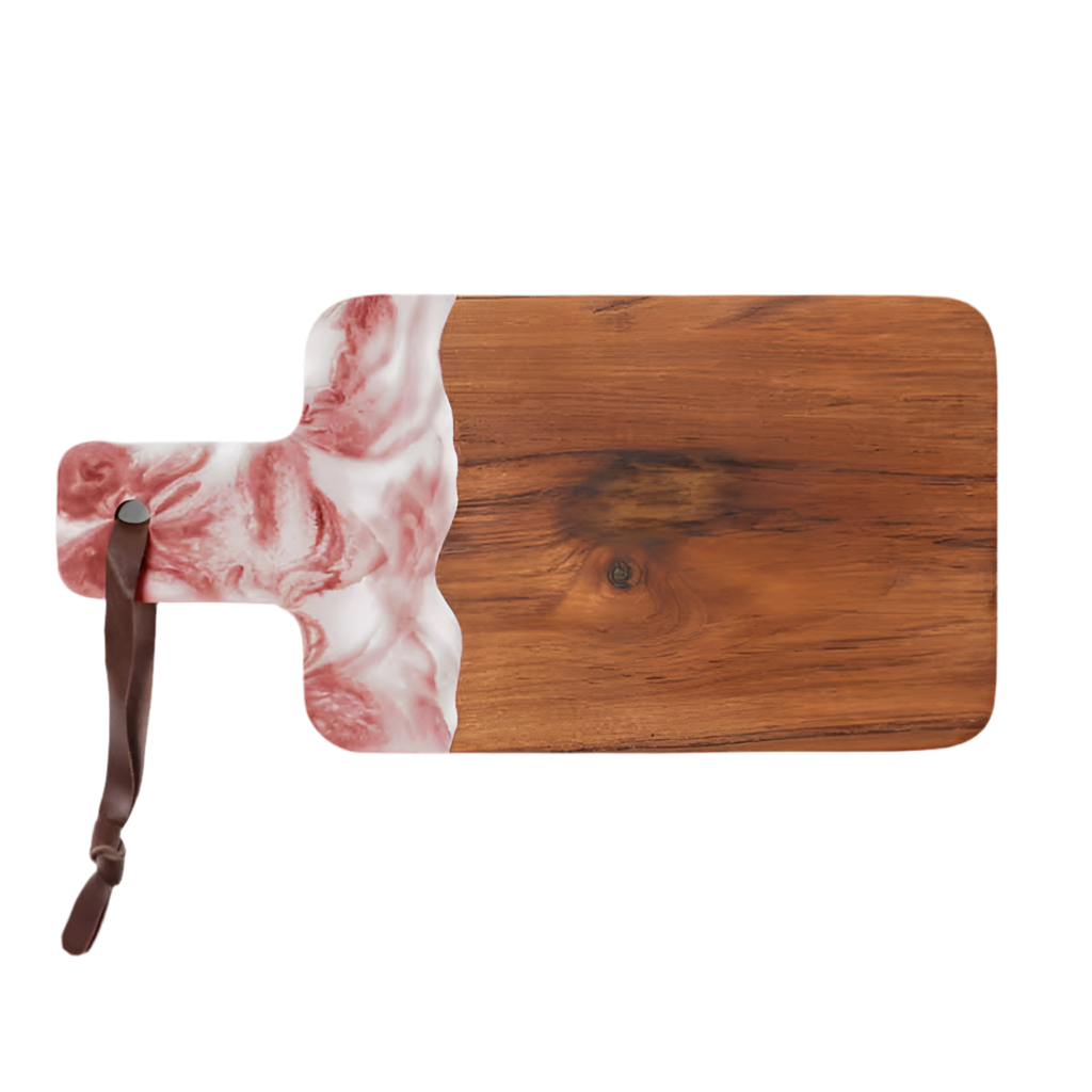 Handmade resin platter with bevel edge and matching knife. Perfect for serving fruit, cheese, antipasti, sushi and hors d'oeuvres.