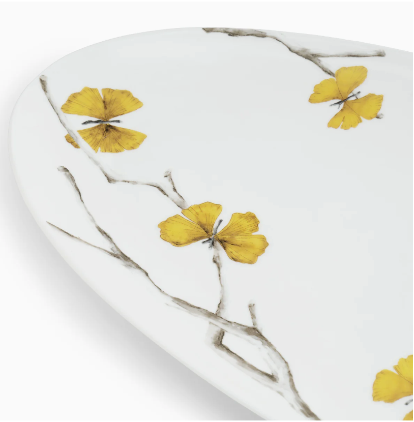 If your piece features one of Annieglass’ most iconic designs: a hand-painted band of precious metal, this metal rim is permanently fused within the glass during Annie’s perfected kiln firing process. This metal rim will not chip or wear off.