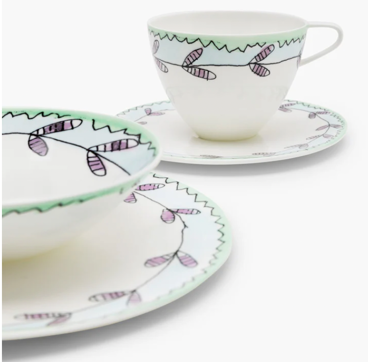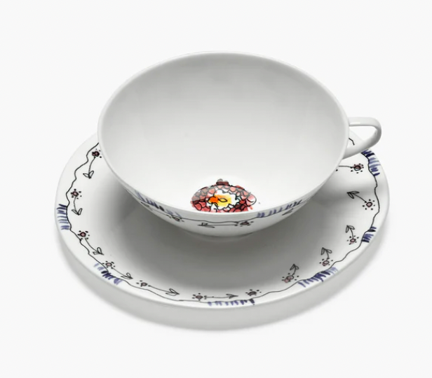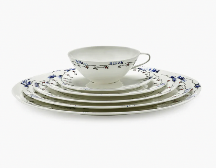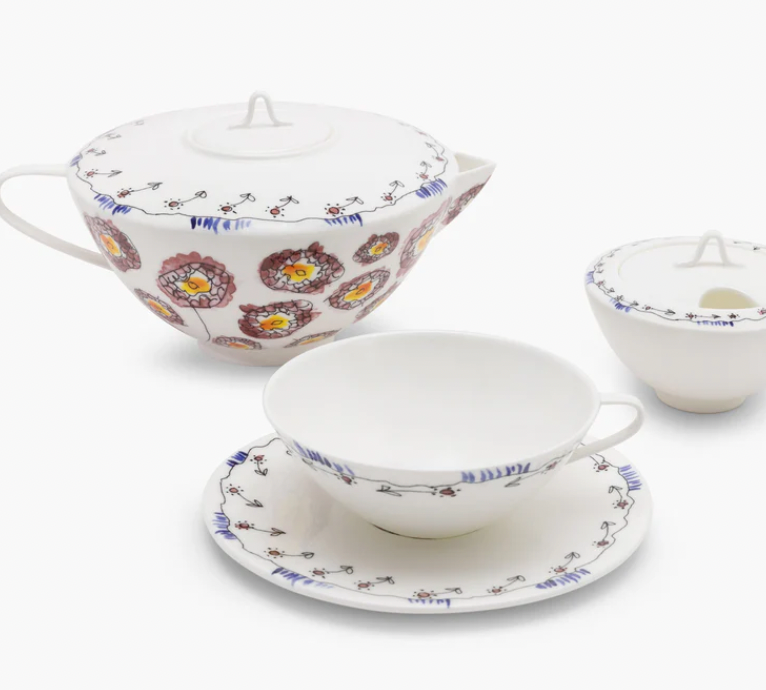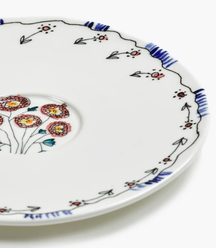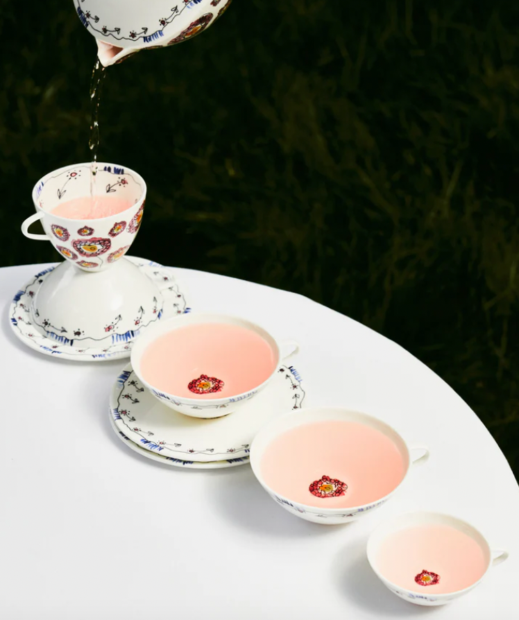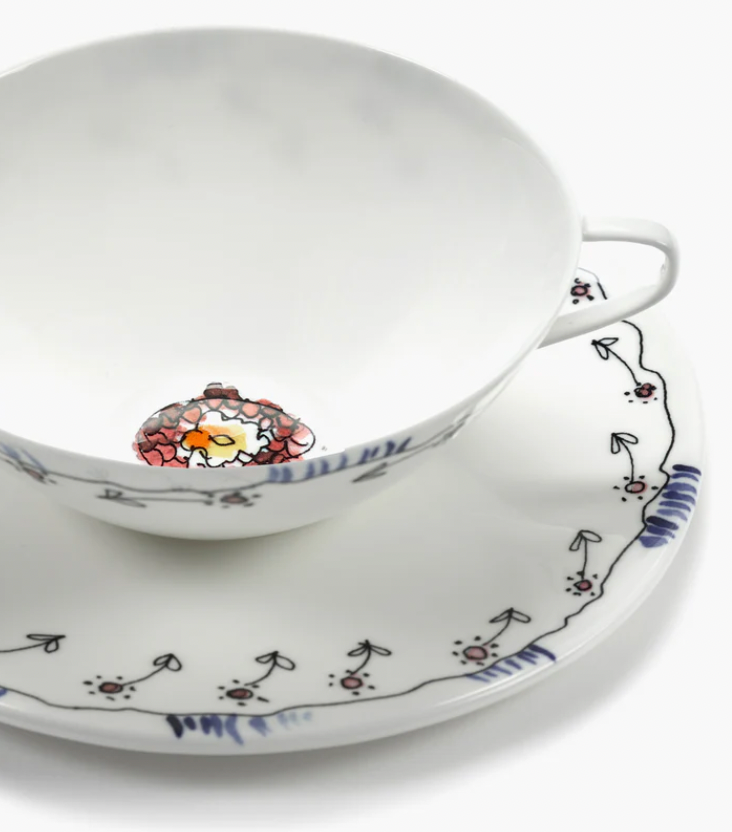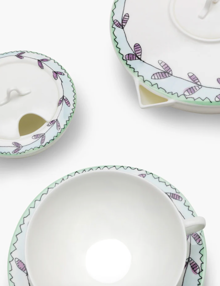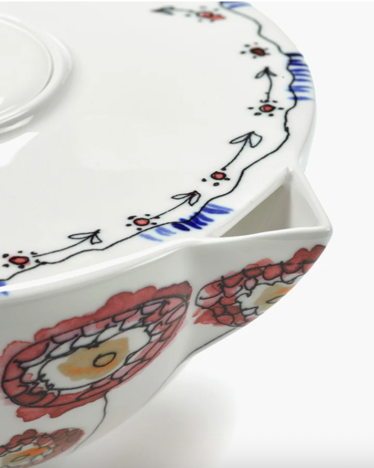 Serax and Marni created an elegant, 120-piece porcelain tableware set, which celebrates the Italian fashion house’s artistic vision. Marni’s Creative Director Francesco Risso designed the flower motif, which was inspired by nature. Decals are used to apply the pattern to the fine bone china, after which it is glazed, to make it more wear resistant. The slightly asymmetrical shapes of the plates, bowls, cups, saucers, and tea pots only serve to accentuate the hand-finished porcelain’s quality.