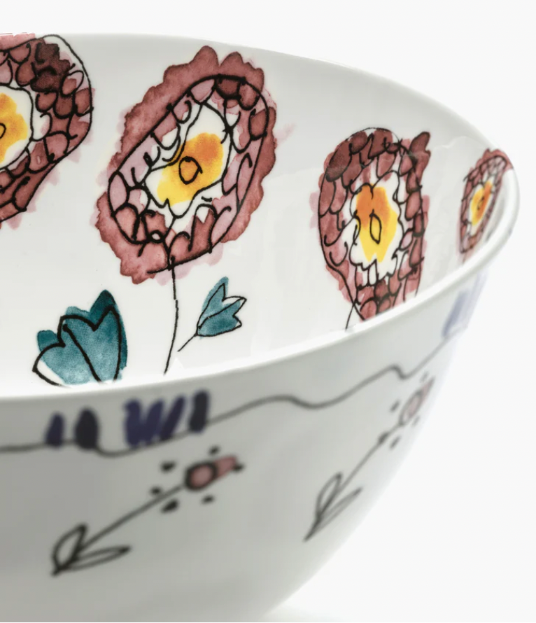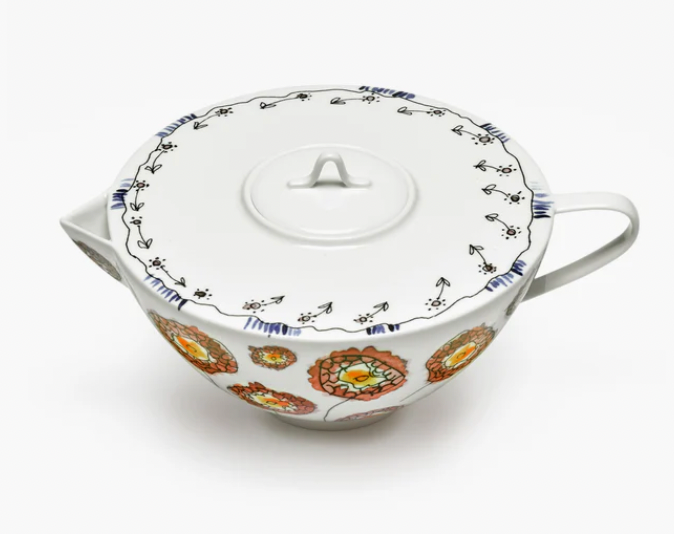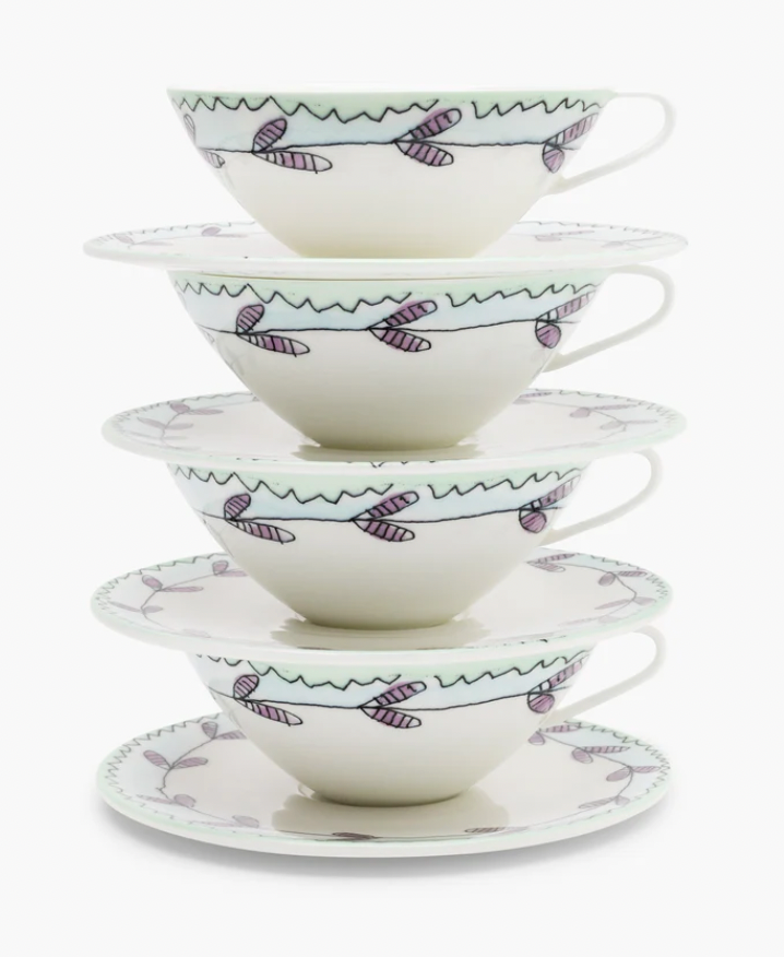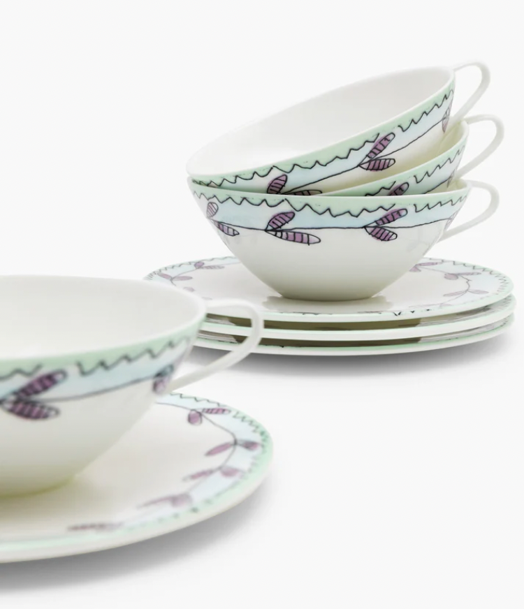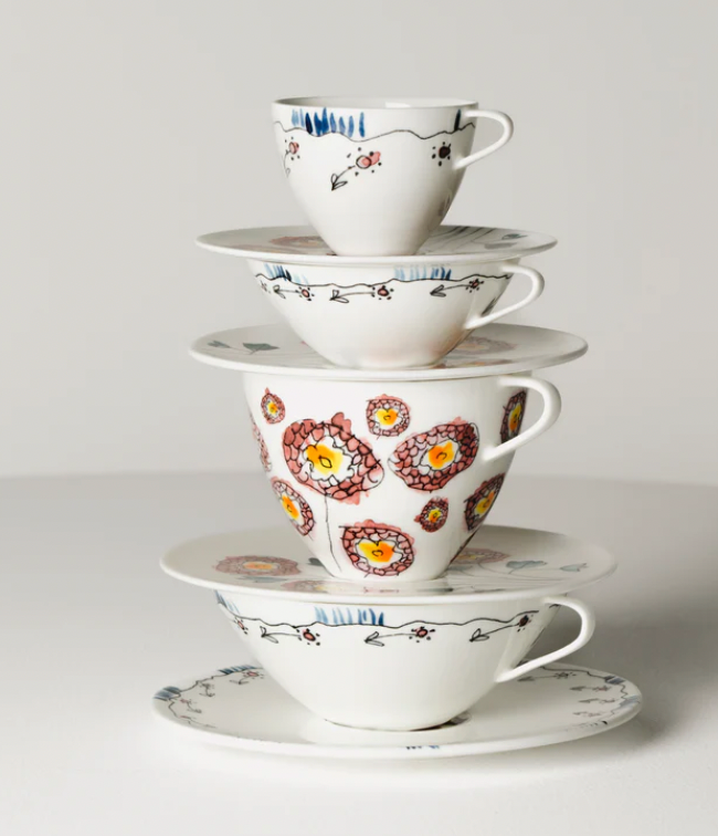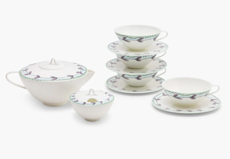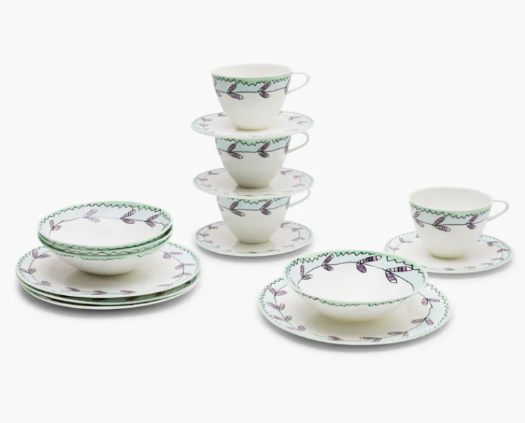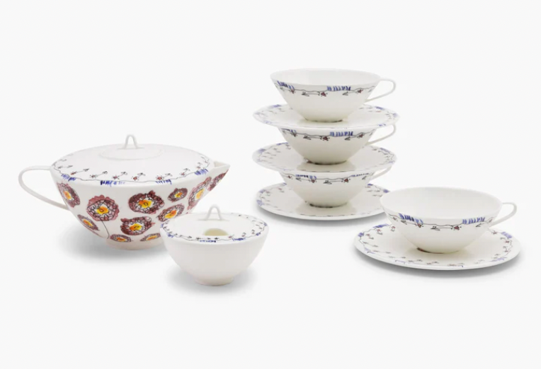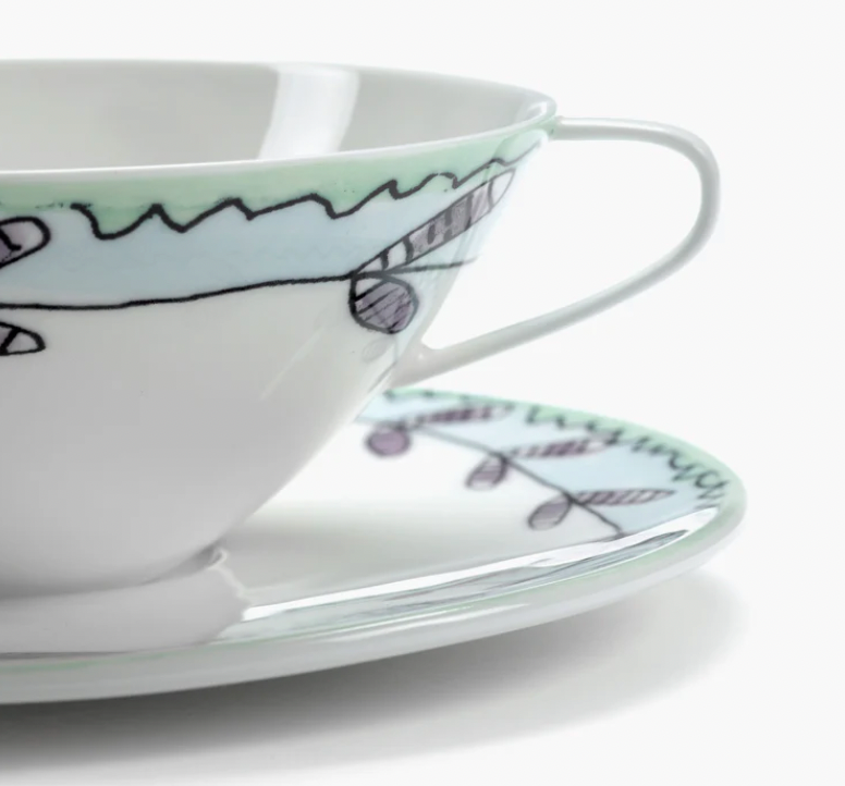Serax and Marni created an elegant, 120-piece porcelain tableware set, which celebrates the Italian fashion house’s artistic vision. Marni’s Creative Director Francesco Risso designed the flower motif, which was inspired by nature. Decals are used to apply the pattern to the fine bone china, after which it is glazed, to make it more wear resistant. The slightly asymmetrical shapes of the plates, bowls, cups, saucers, and tea pots only serve to accentuate the hand-finished porcelain’s quality.