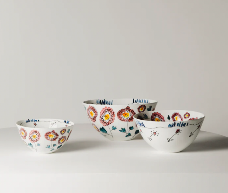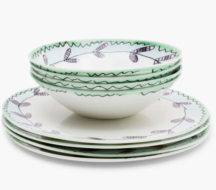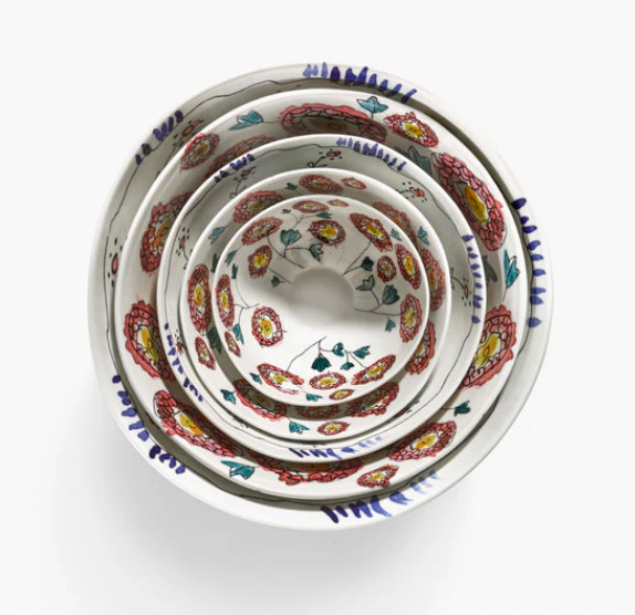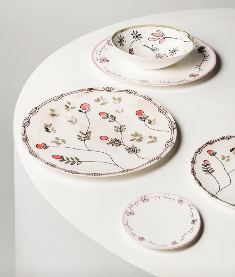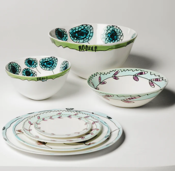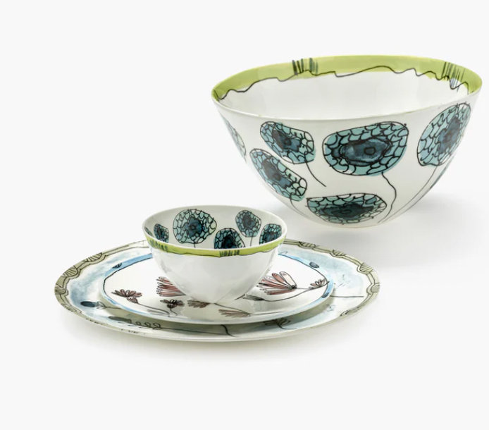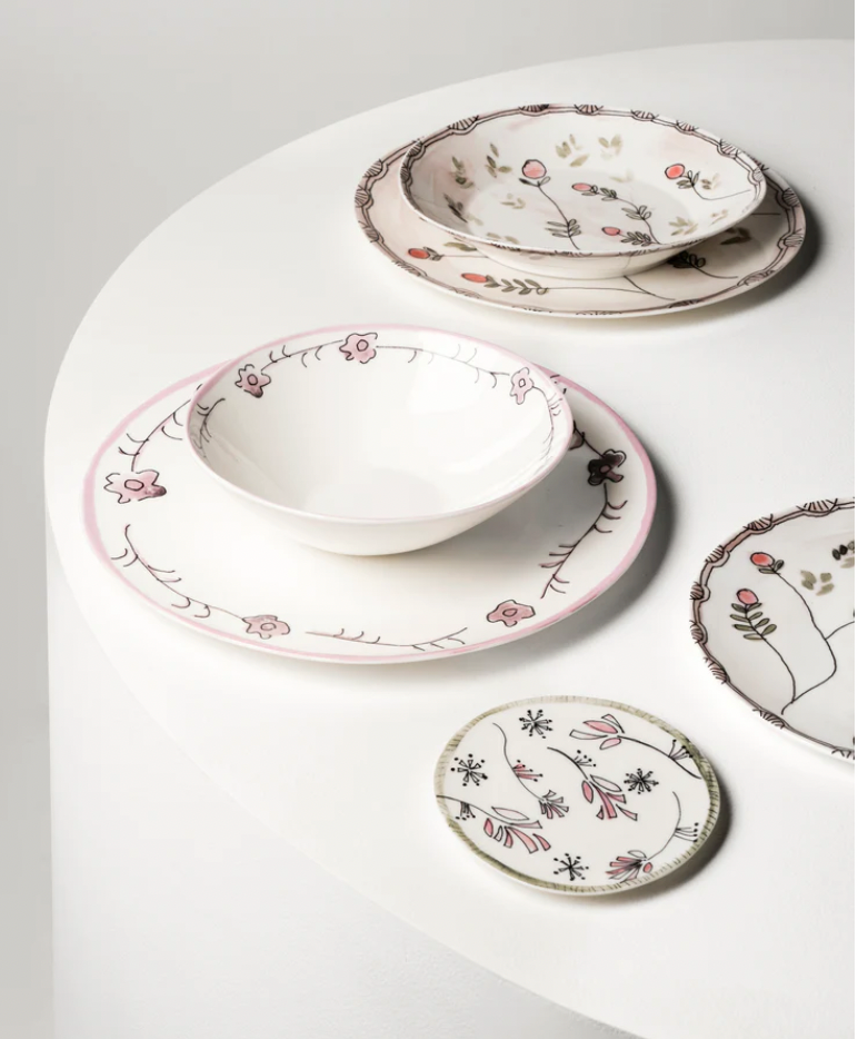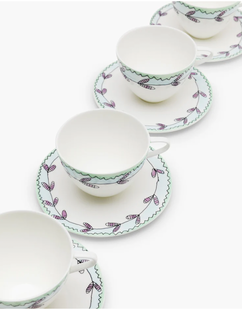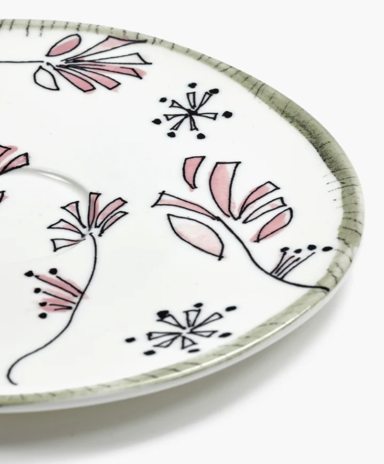 Serax and Marni created an elegant, 120-piece porcelain tableware set, which celebrates the Italian fashion house’s artistic vision. Marni’s Creative Director Francesco Risso designed the flower motif, which was inspired by nature. Decals are used to apply the pattern to the fine bone china, after which it is glazed, to make it more wear resistant. The slightly asymmetrical shapes of the plates, bowls, cups, saucers, and tea pots only serve to accentuate the hand-finished porcelain’s quality.
