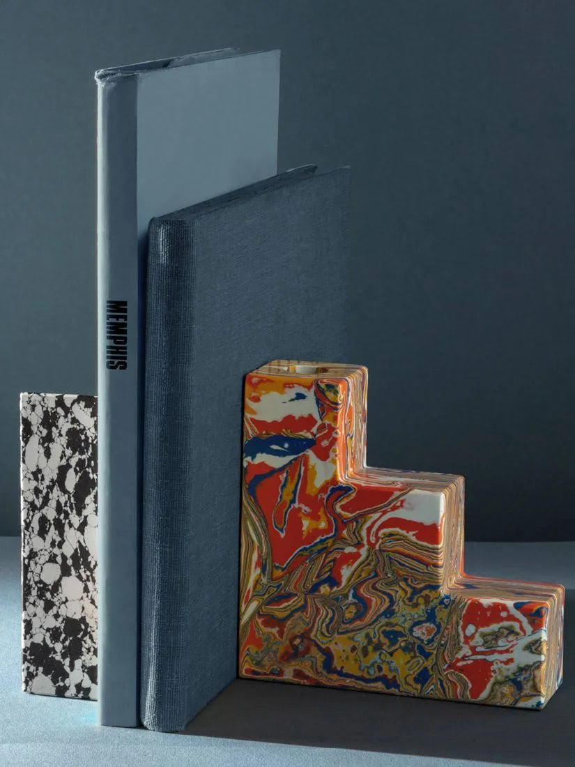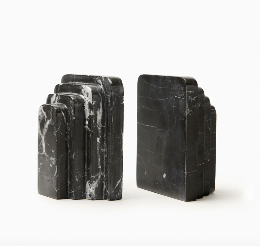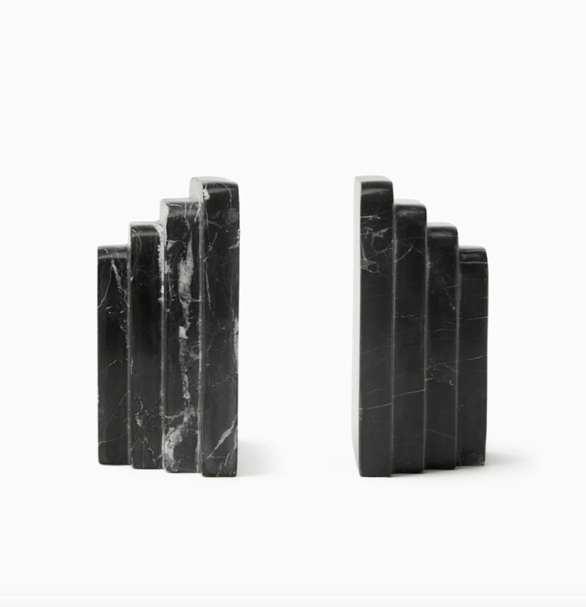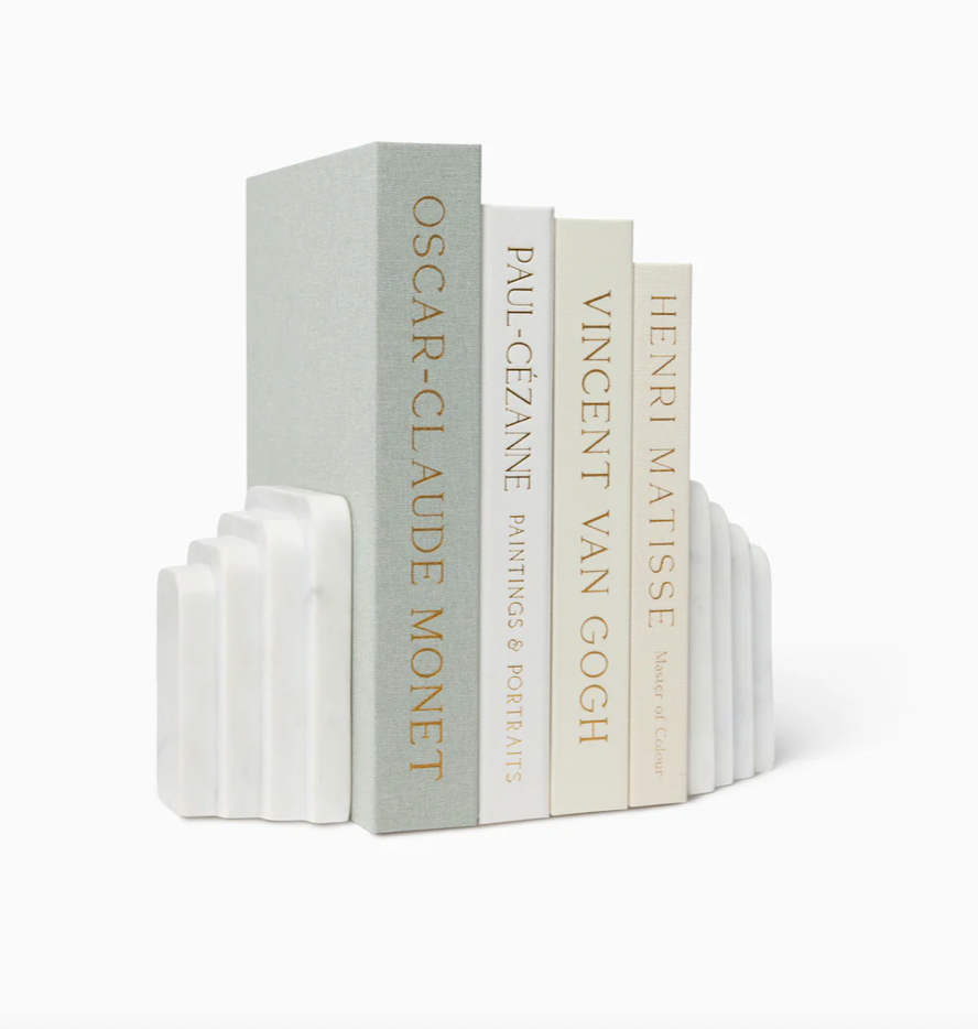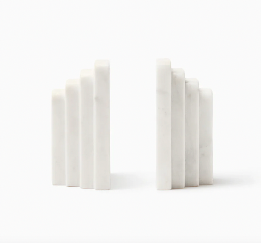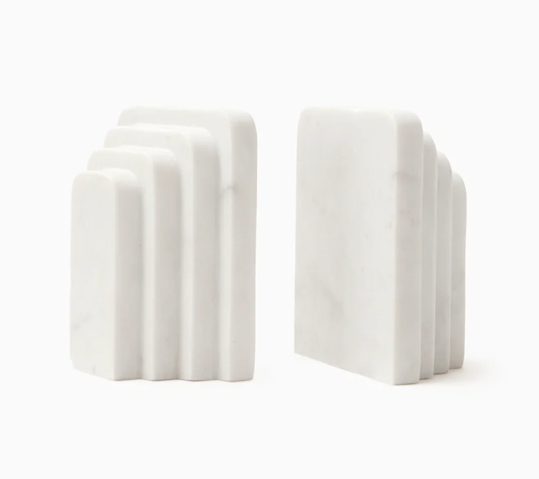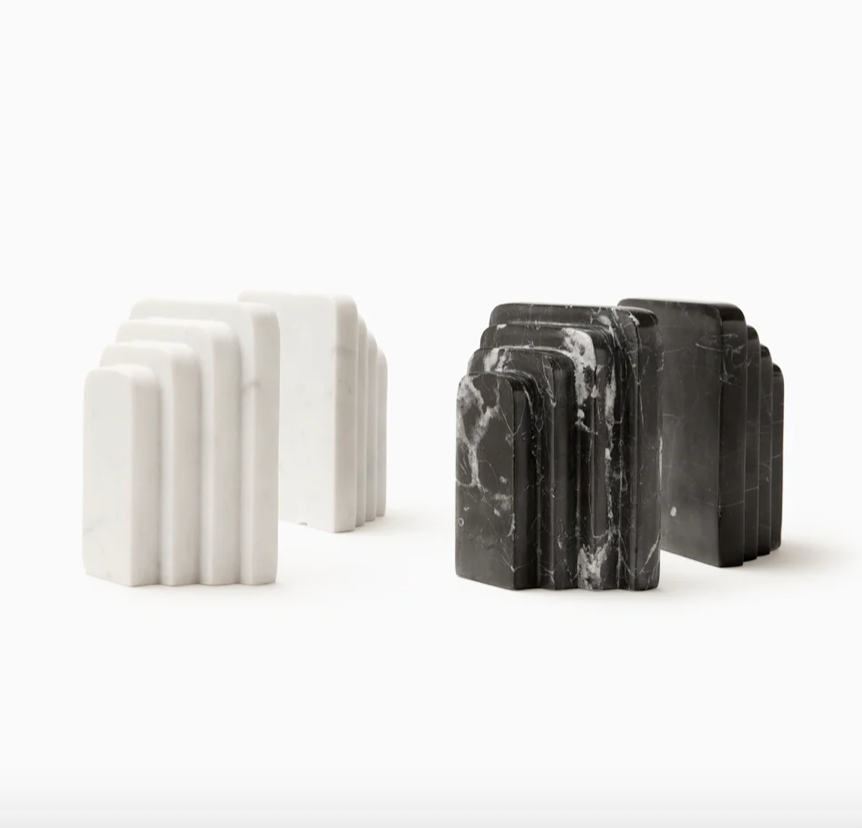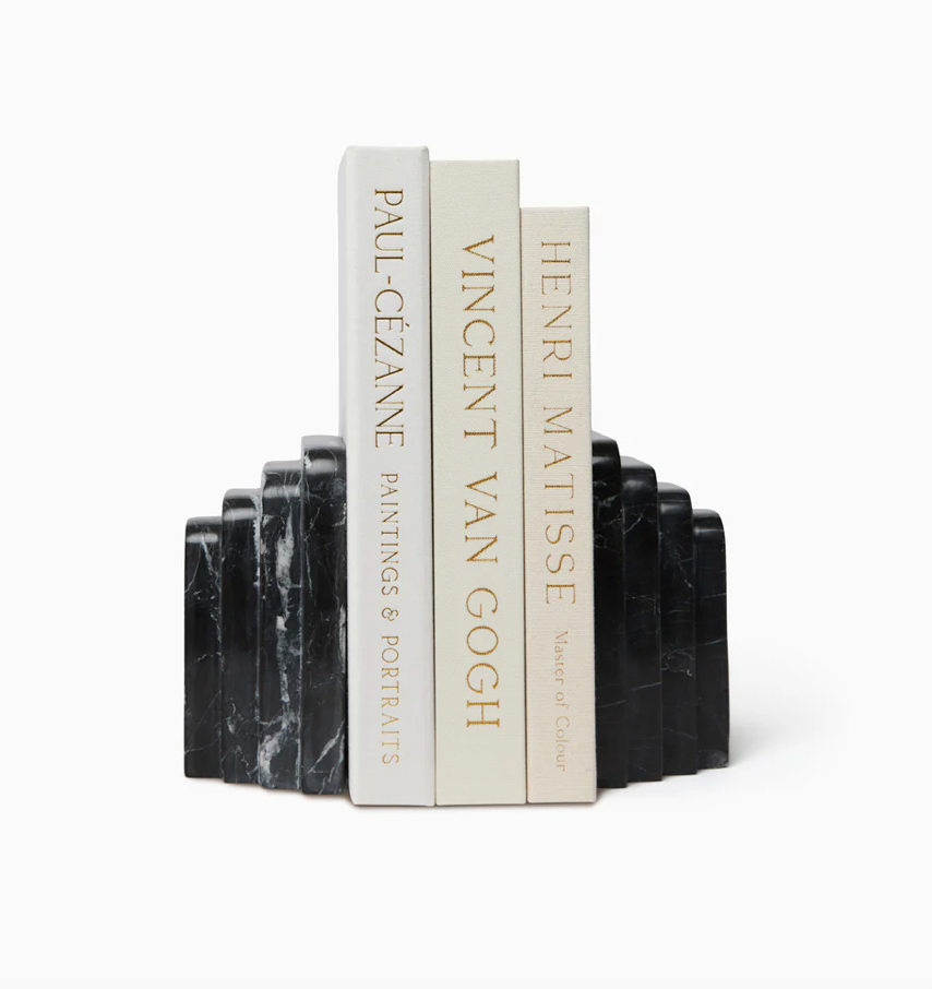 Inspired by modern architecture, our Ring Bookends adorn your bookshelf in style. Perched at an almost-impossible angle, the metal piece was designed to delight, while holding your books securely. Hewn from Italian Carrara marble, these bookends are designed to elevate your space.