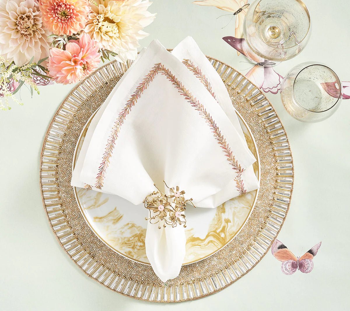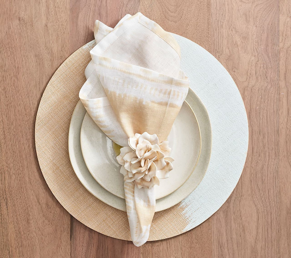 Set a stunning Thanksgiving table with The Gobble Napkin Ring, which features natural feathers in the shape of a turkey. Part of the autumnal Harvest Collection, these fall themed napkin rings will add a festive touch to your autumn table settings. This Thanksgiving Napkin Ring features fall shades of brown, reds and oranges.