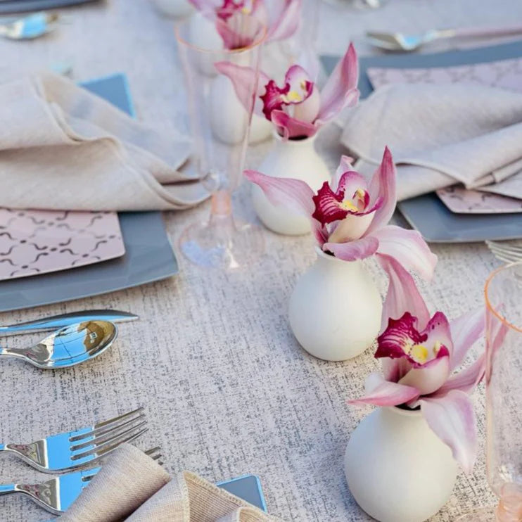 Bring the essence of nature to your table with our Lily Garden collection. Printed on 100% cotton fabric, these linens feature a graceful print of blooming lilies and fluttering butterflies in soothing pastel and eye-popping bright tones. The lively border provides a finishing touch in colorful hues, bringing an extra pop of color to your table.