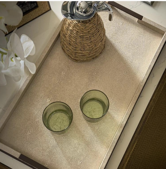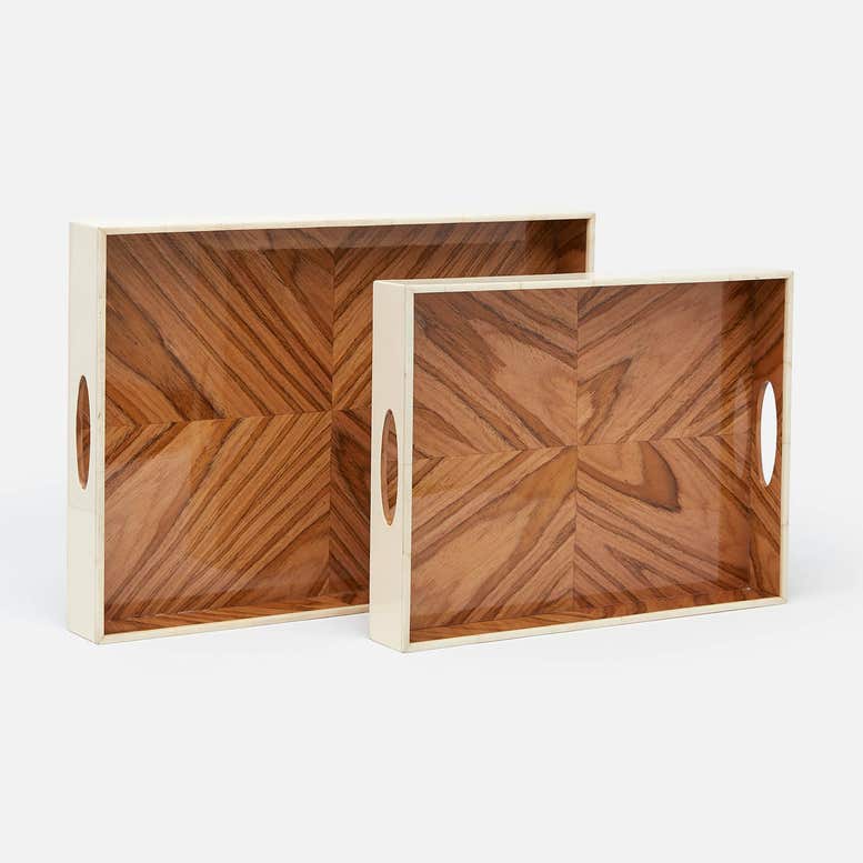Constructed from tightly woven natural raffia and finished with a solid, bold border. Our Hammet trays are perfect for organizing those must-haves within reach, or for stacking on top of one another as an artful, understated centerpiece.