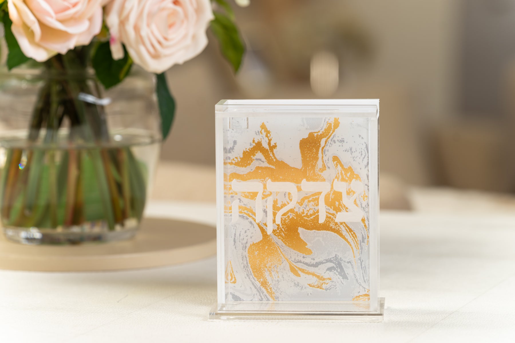 Beautiful lucite Tzedakah Box handmade from luxury acrylic.