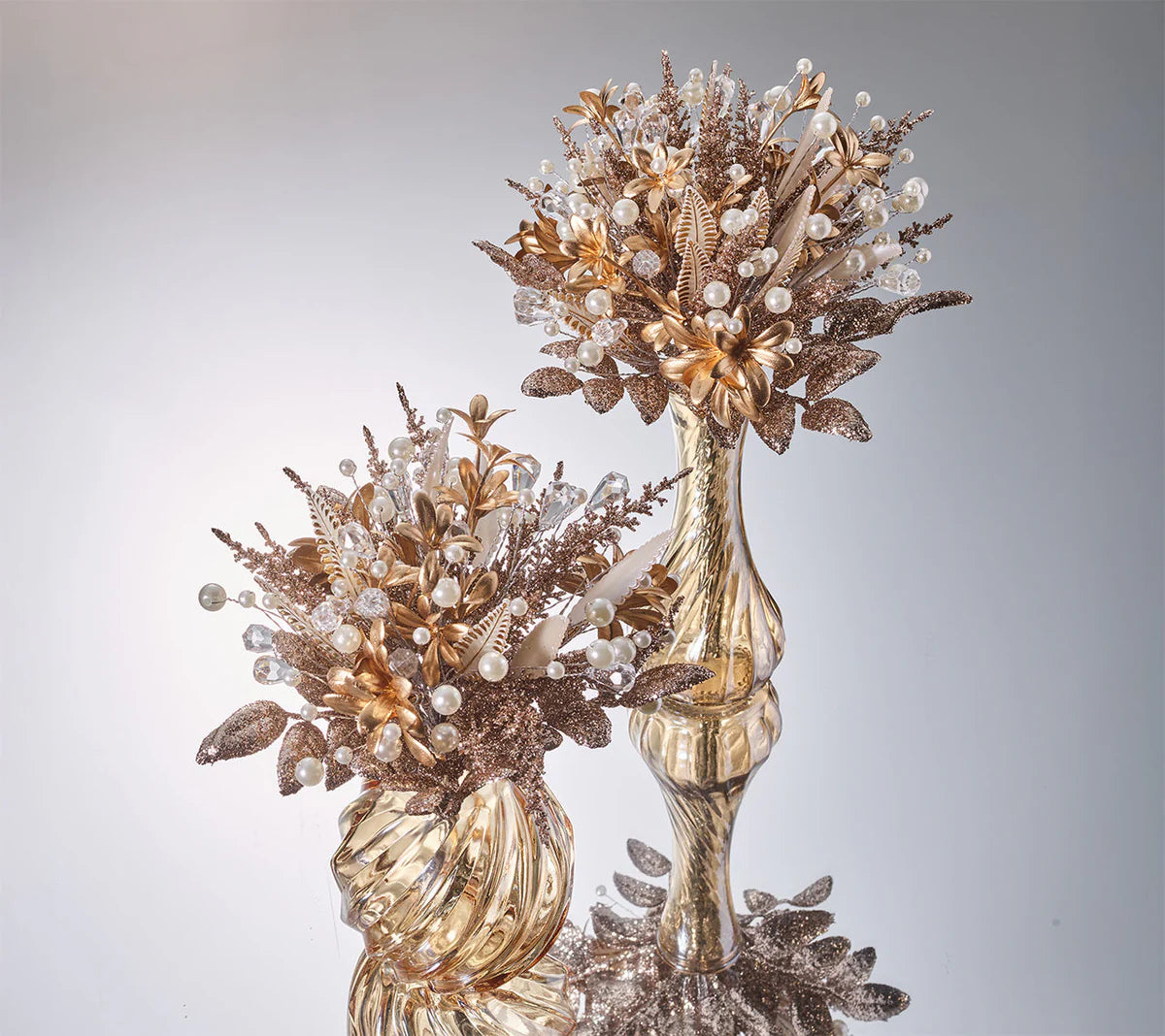 MATERIALS: 45% Glass, 30% Plastic, 10% Polypropylene foam, 5% Iron wire, 5% Pinecone, 4% Paper, 1% Glass beads