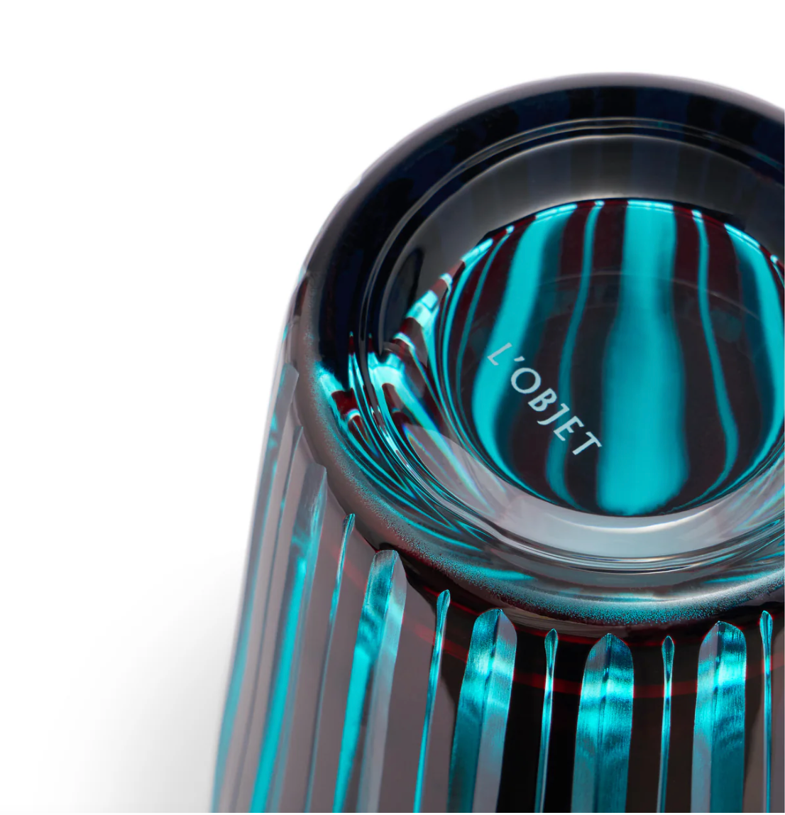 All L’OBJET collections are made with exceptional materials, and with proper use and care, will last for generations. Colored glassware is best handwashed with a soft cloth and mild, non-abrasive soap, though it may be placed in the dishwasher on a gentle, cold, or eco cycle. Do not overload the dishwasher and avoid abrasive or citrus-based detergents to preserve the color and finish.