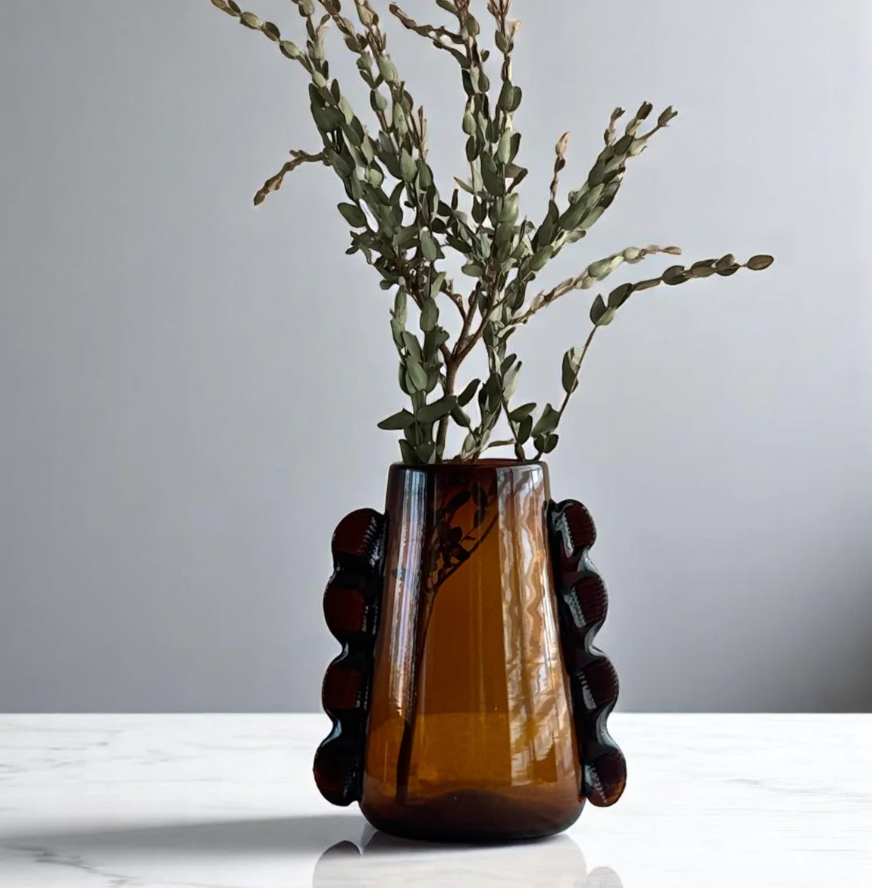 A psychedelic update of an Italian post-modernist aesthetic, the pop sensibility of Swirl is created from a series of geometric forms stacked upon one another to create multi-dimensional, functional sculptures. The unique process involves recycling the powdered residue from the marble industry, mixed with pigment and resin to create blocks of material that can then be sawn, sliced and turned on a lathe. Stem, Small and Medium vases are inspired by Ikebana, which is the Japanese art of flower arrangement. Anchored with a heavy base, the cylindrical vessels allow branches and flowers to cantilever out.