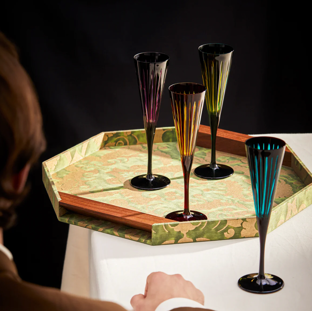 A dazzling quartet, the Champagne Flutes are each designed in one of PRISM’s iconic colours. These celebratory vessels are designed to refract light and delight at every toast.