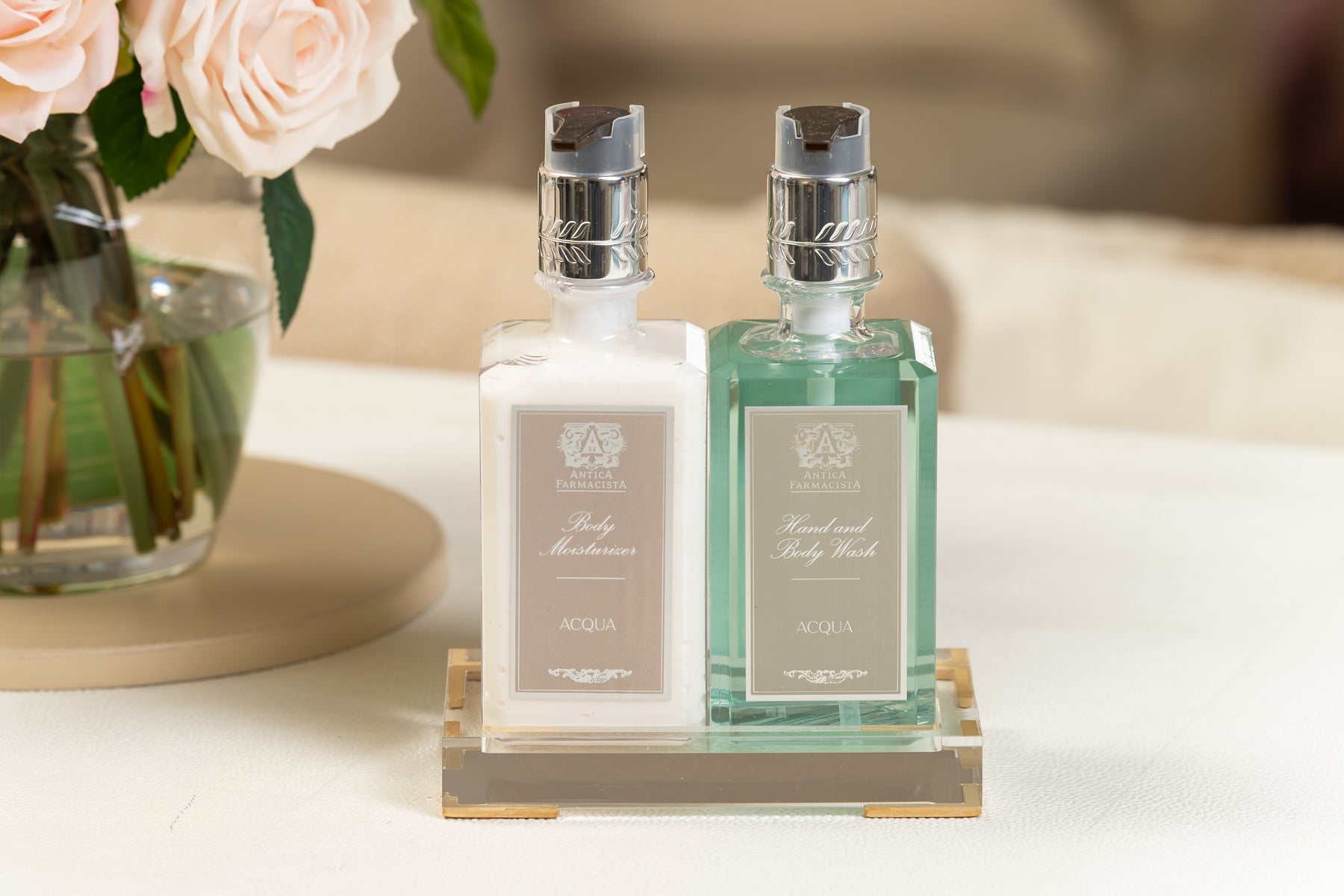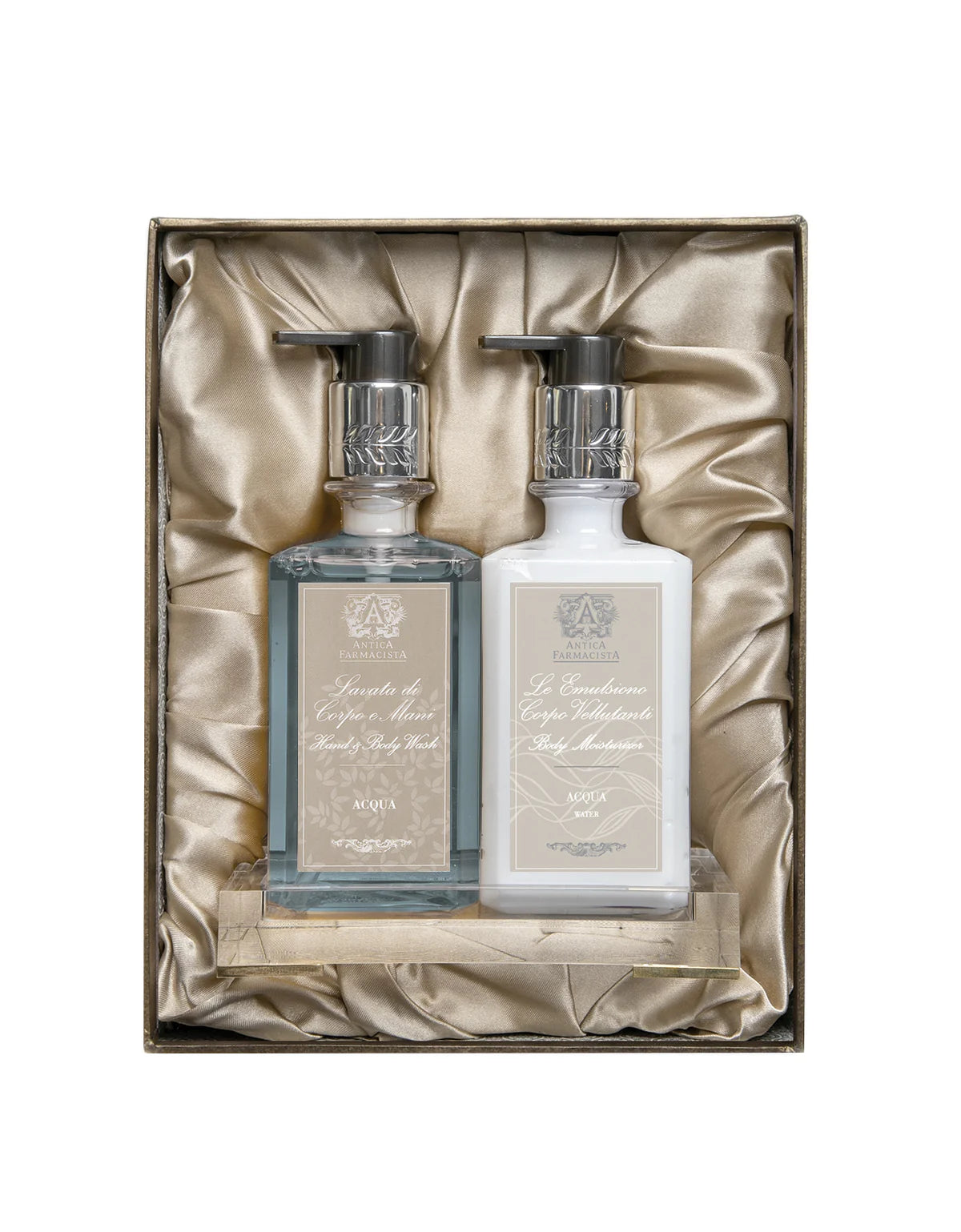 THE PRODUCT: Antica allows you to make your gift giving thoughtful, personalized and luxurious. This exquisite gift set includes Hand & Body Wash, Body Moisturizer and our new Acrylic Bath & Body tray in a decorative two-piece croc-embossed gift box, perfectly packaged and ready for gift giving.
