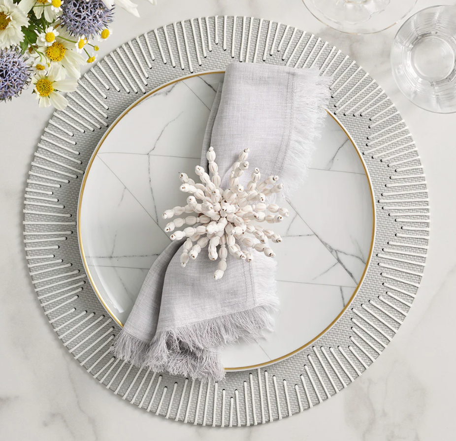 The Dreamweaver Placemat is a must-have favorite, offered in new fashionable colorways. These versatile gray and white shades blend classic refinement with a carefree sophistication that speaks to any style.