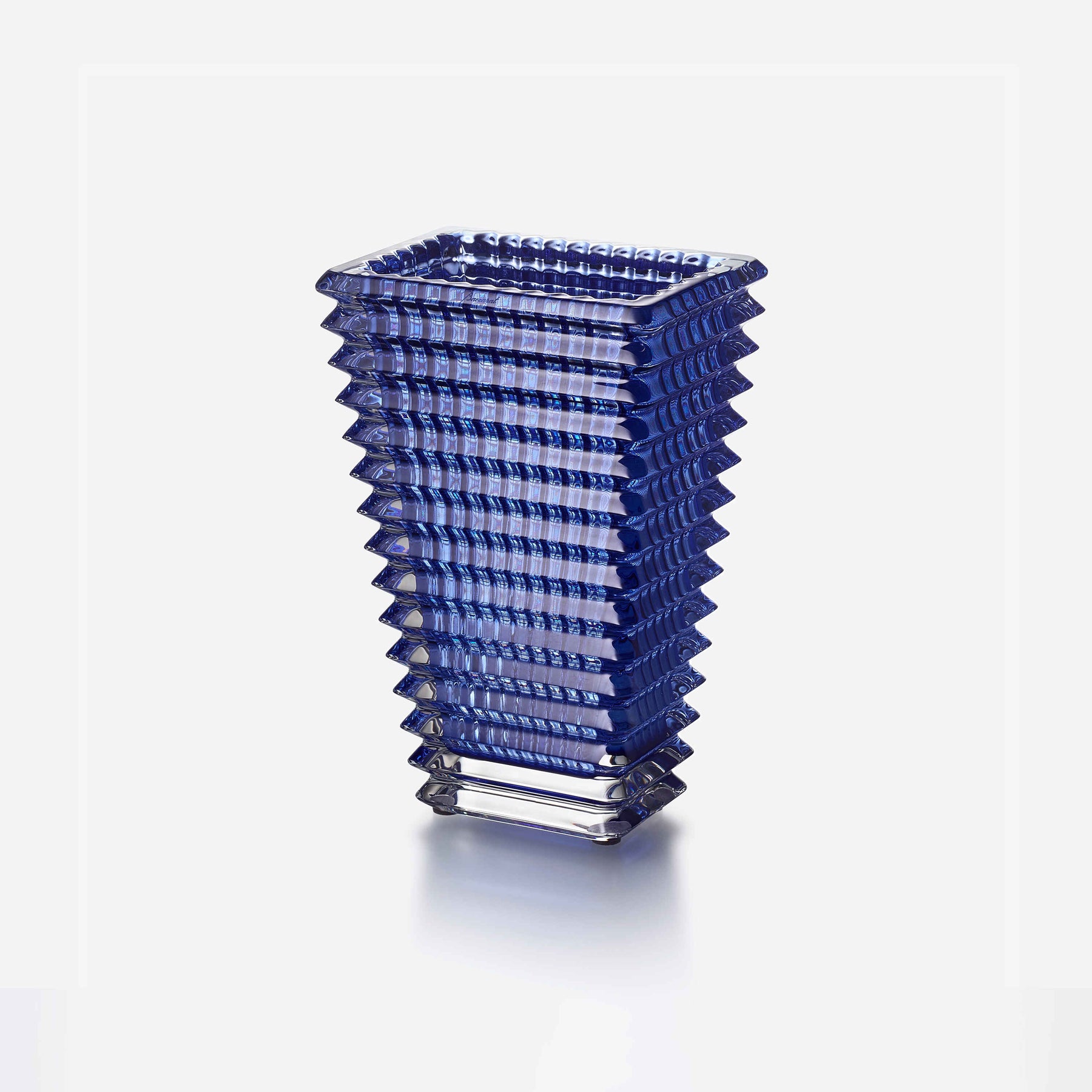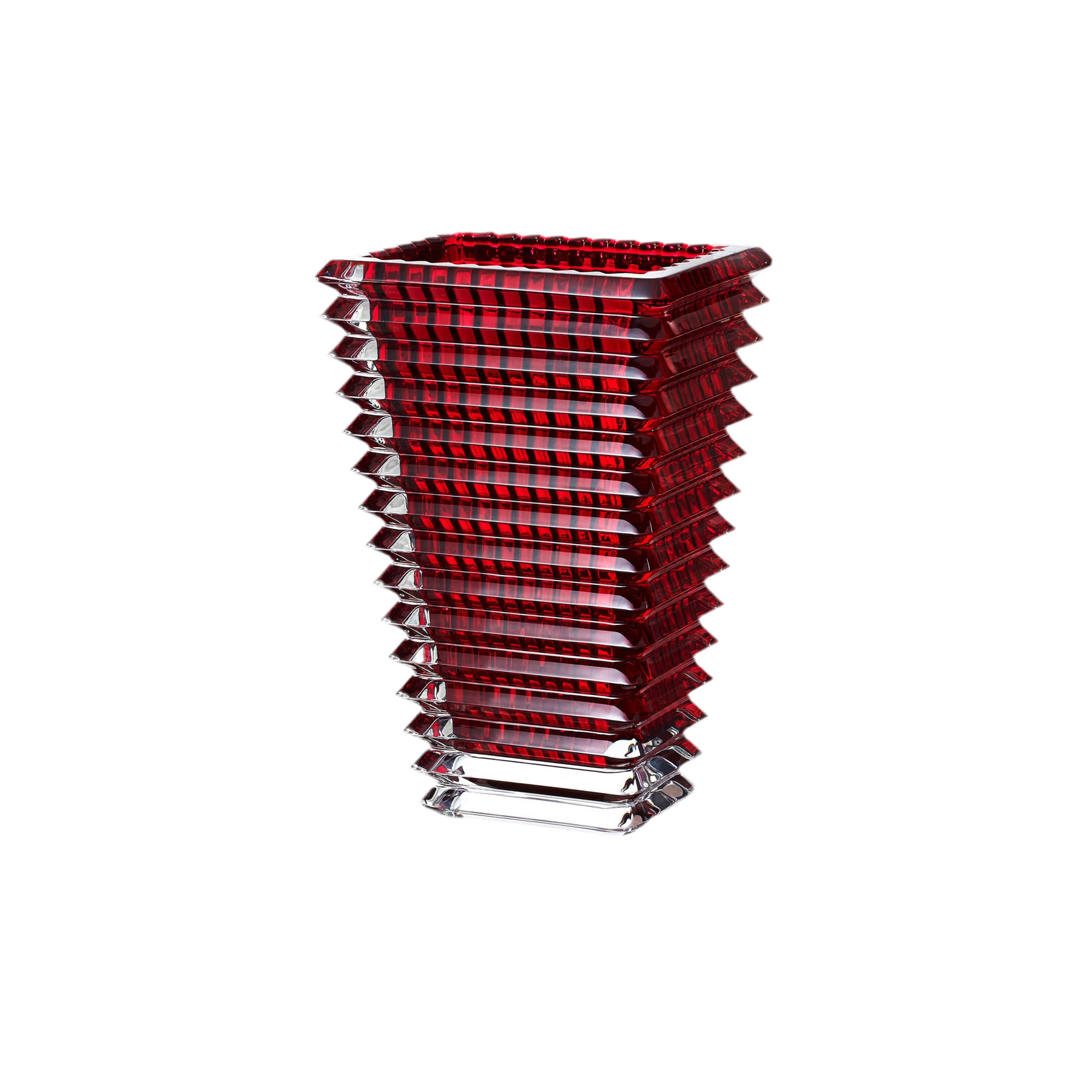 The wavy design of the crystal Eye vase comes from an extraordinary technique: exterior horizontal cuts and interior vertical cuts combine to produce a magic visual effect. With bevel cuts conjuring perpetual movement, the Eye vase is a spiral of light. The Eye Vase fabrication produces a multitude of shades and shapes leaving scope for an infinite number of compositions for every taste and in every color.