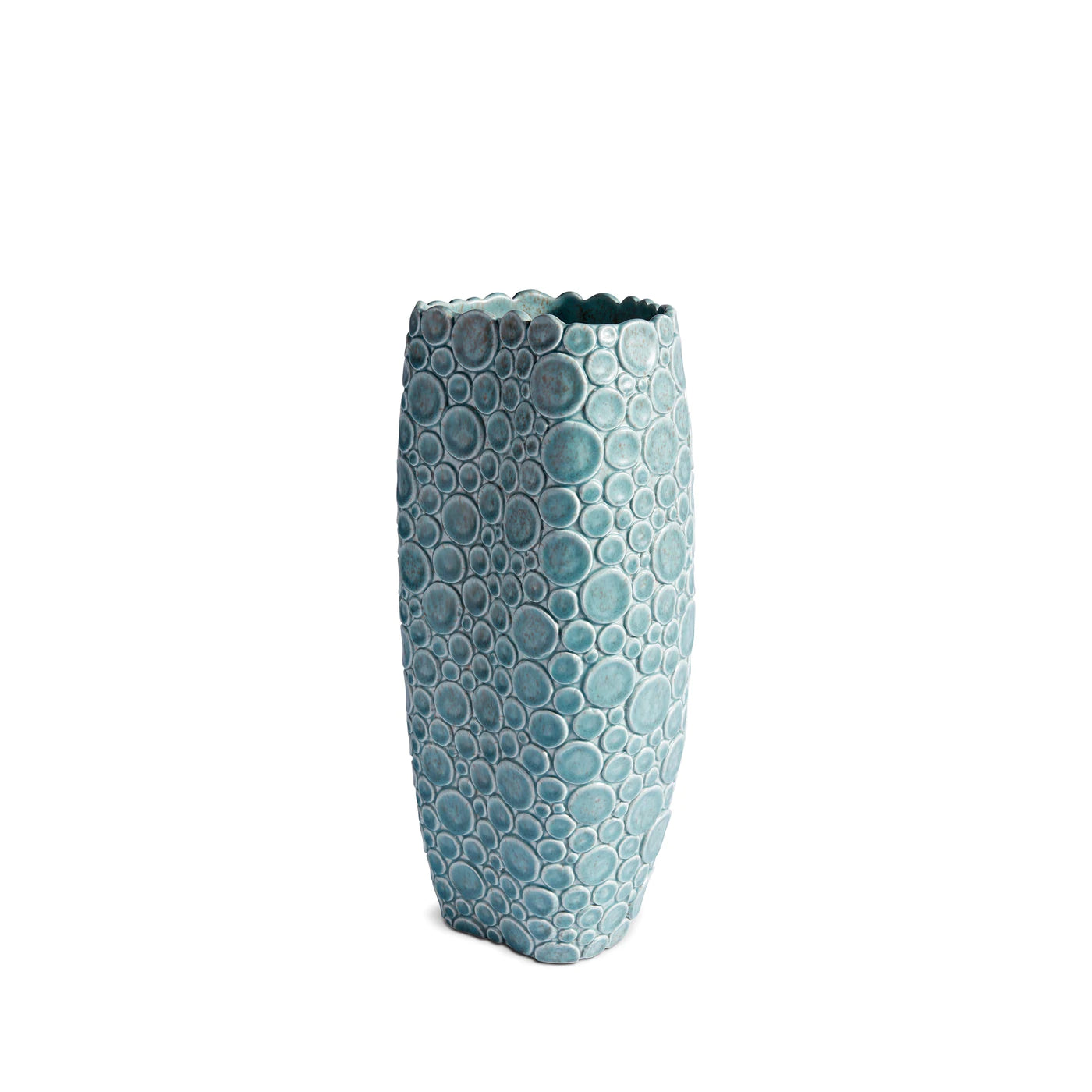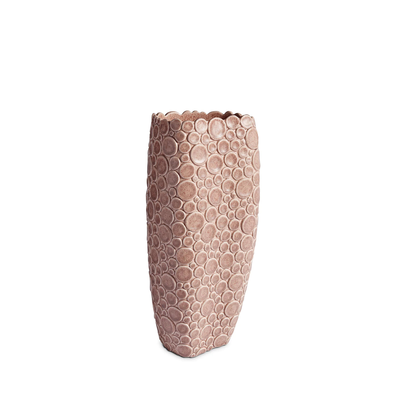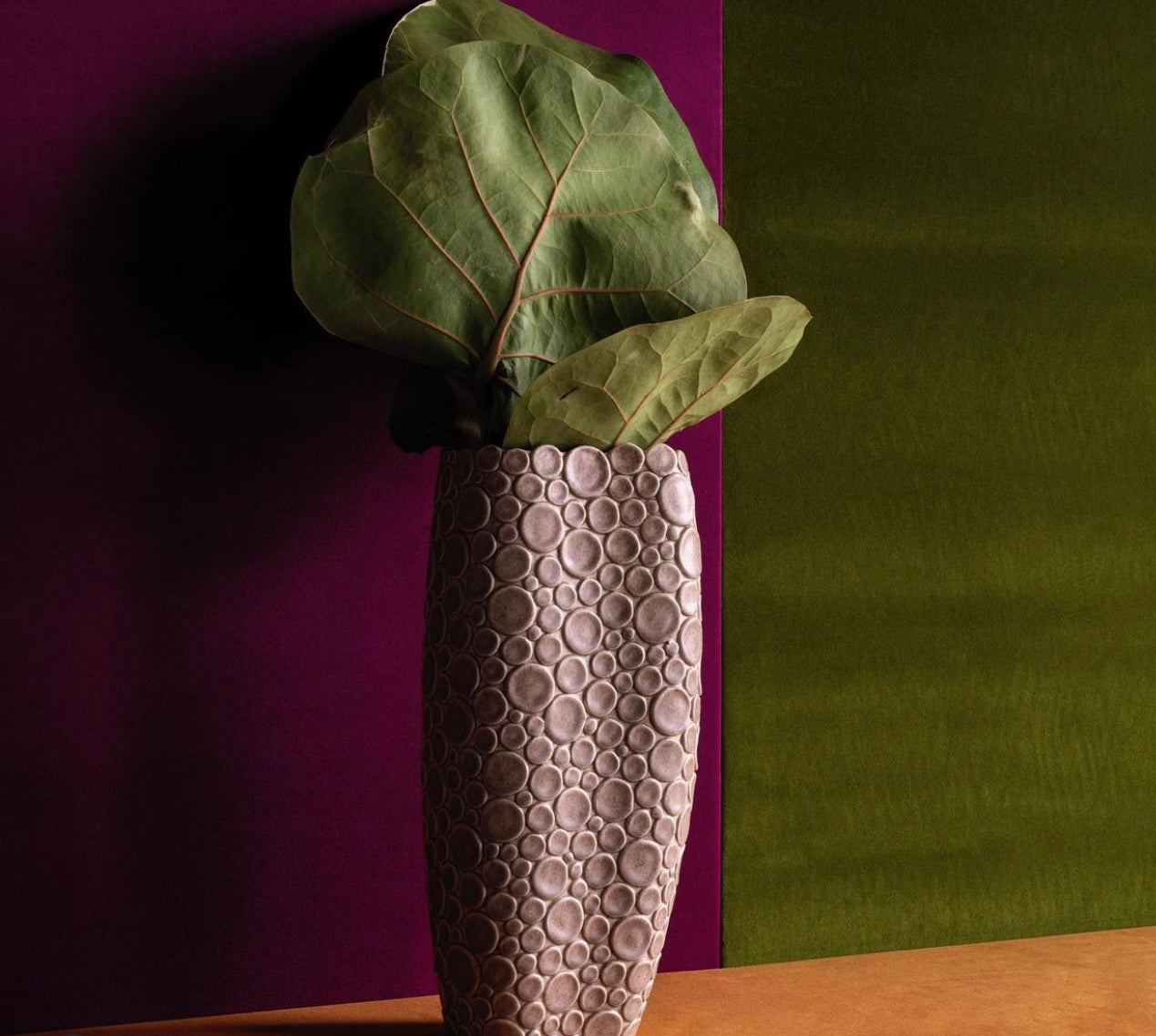 Haas decorative vases incorporate hand-carved textures reminiscent of bubbly animal scales, undulating locks of fur, and volatile glazes in a dusty desert palette. The organic shapes intimately nest against one another, as in a herd.