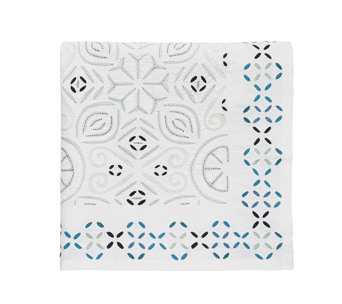 The Malta Tablecloth showcases intricate cutwork designs that blend global traditions with Matisse's bold artistic flair. In crisp colorways, it transforms any table into a canvas of elegance. More than beautiful decor, it elevates every meal with its timeless artistry, ensuring it remains a stunning centerpiece every season.