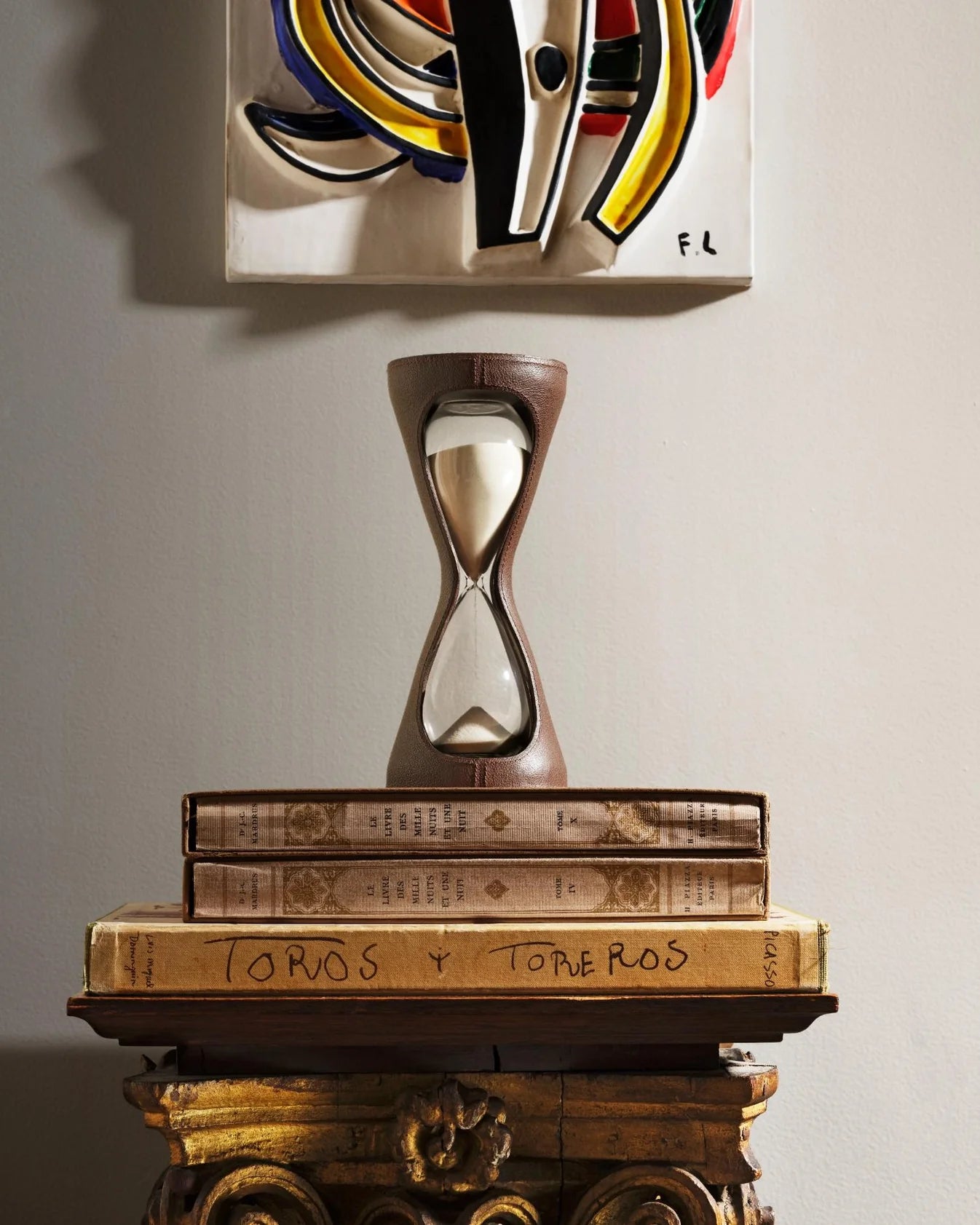 The Mirage Hourglass is a feat of technical sophistication, showcasing a leather exterior that cradles a delicate glass centerpiece. More than just a decorative object, it symbolizes the importance of time and precision, measuring exactly one hour. Its impressive design makes it a timeless addition to any space, effortlessly fusing beauty and purpose.
