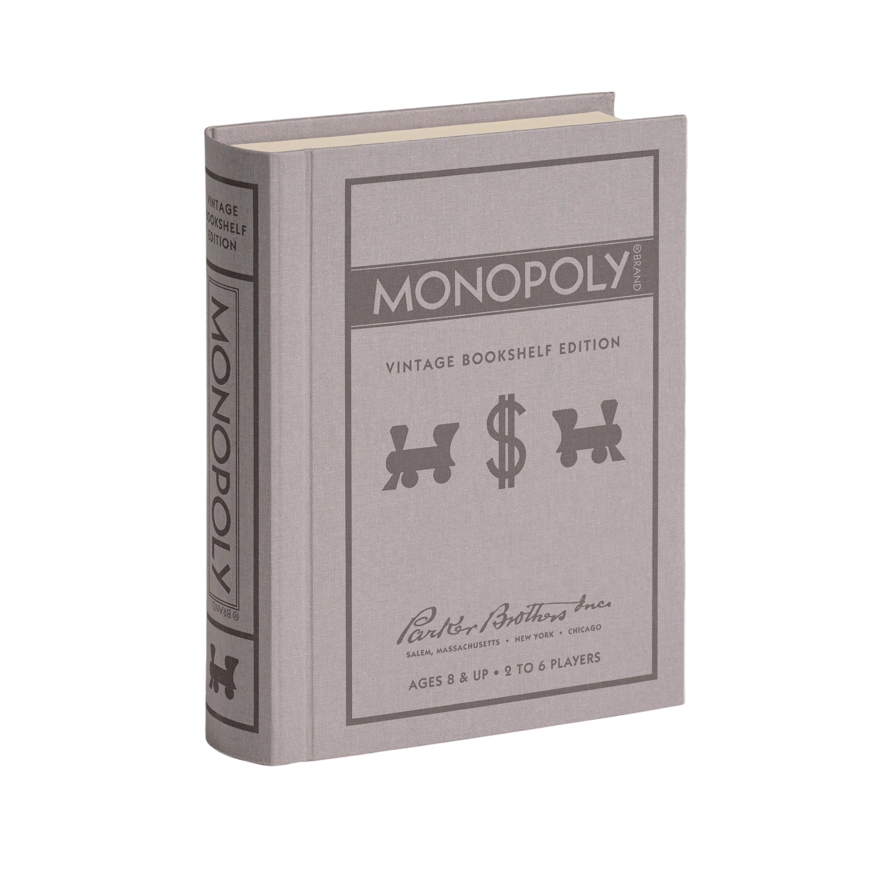 Buy, sell, and build your way to fortune in Monopoly, the classic game of property trading and strategic deal-making. Inspired by the beloved 1935 original, this bookshelf edition features die-cast tokens, wooden houses and hotels, and vintage graphics—all neatly stored in a fabric-covered book designed to complement your decor between game nights.